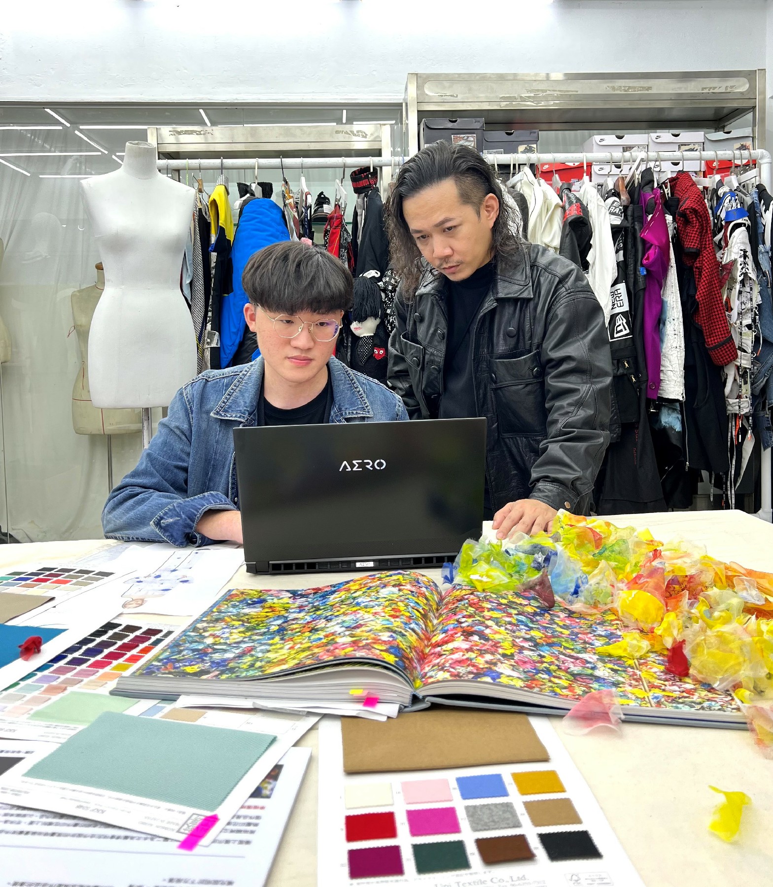 ↑圖說:品牌「JUST IN XX」創辦人周裕穎(右)於設計室裡專注工作。(圖片來源:設計師周裕穎提供)