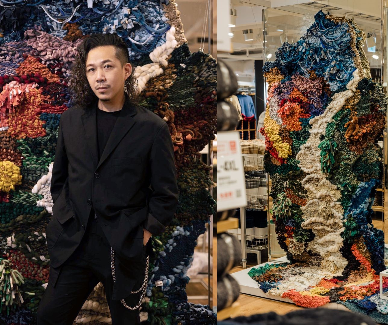↑圖說:設計師周裕穎與永續支線品牌「Luxxury Godbage」為UNIQLO台北全球旗艦店打造獨一無二的裂織技法裝置藝術。(圖片來源:設計師周裕穎提供)