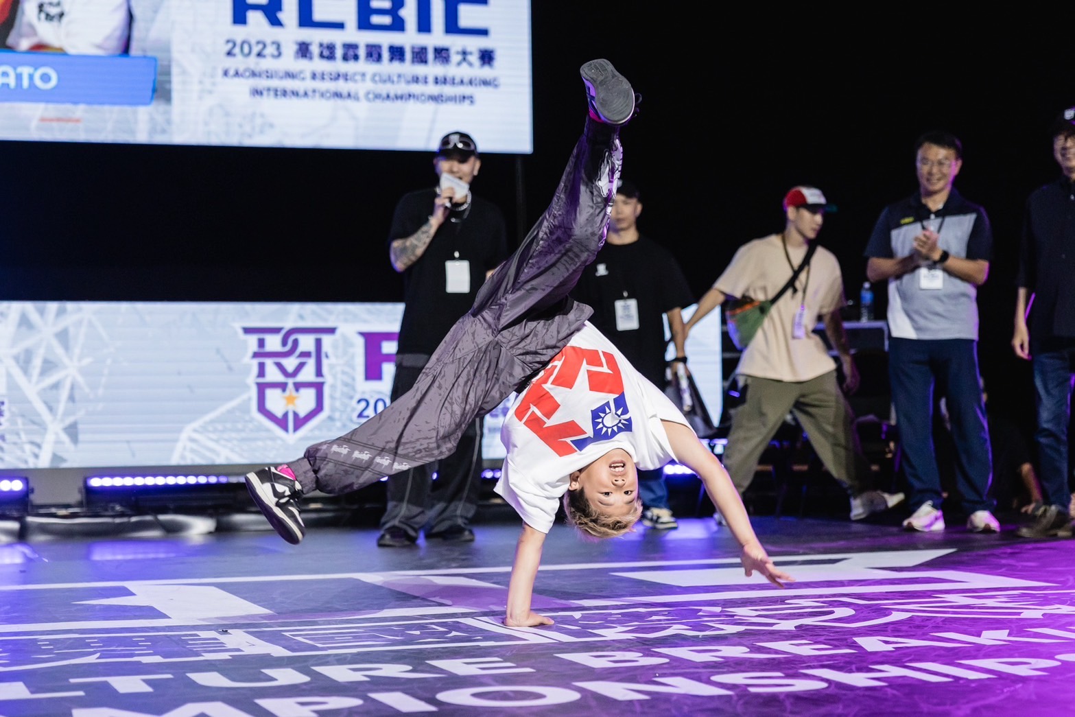 ↑圖說:NANA參加2023高雄霹靂舞國際大賽展現擅長的頭轉技術(圖片來源:高雄市運動發展局提供)
