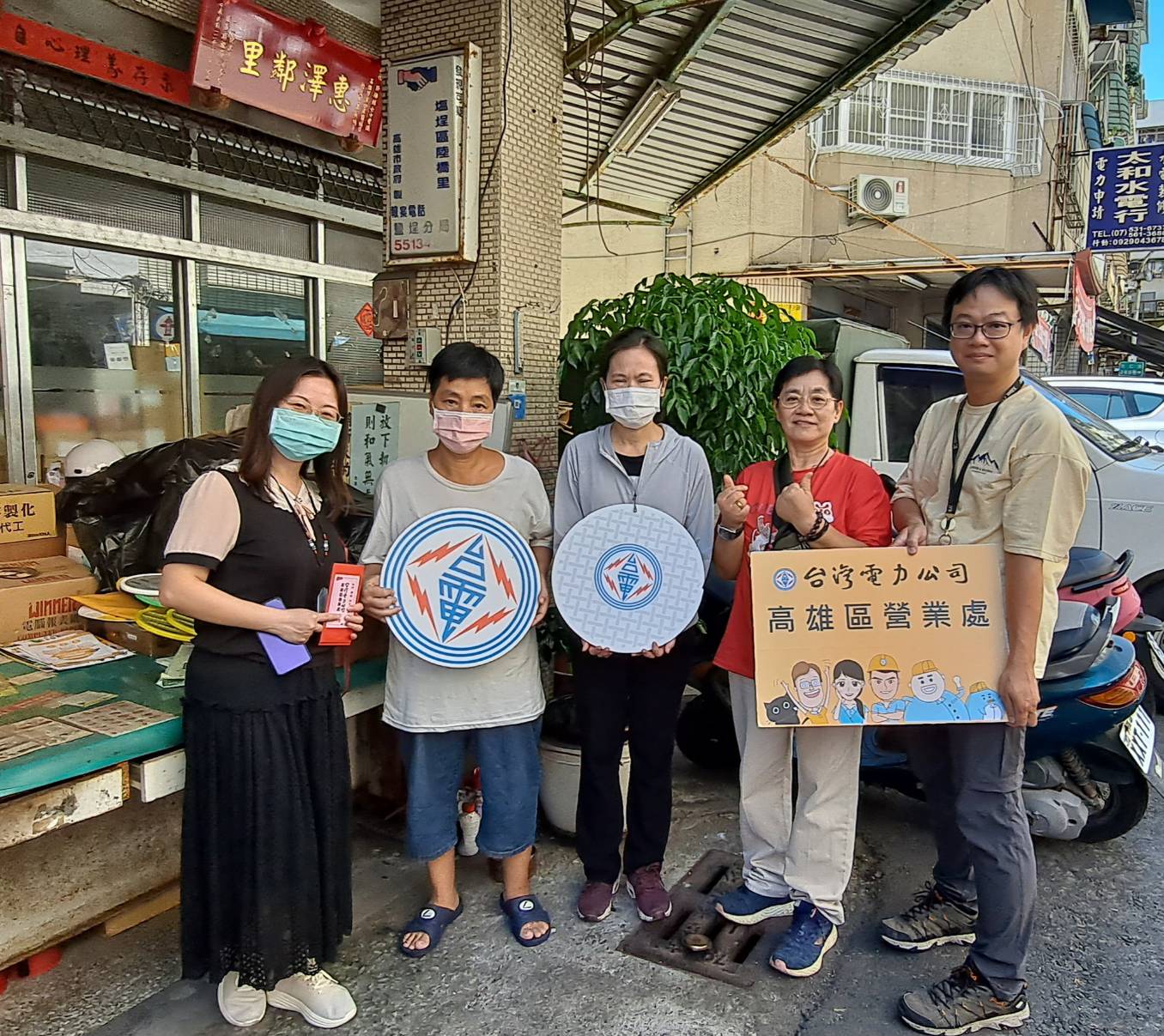 ↑圖說:高雄區處於12日上午由業務副處長趙淑芬(右二)率隊,至附近的峰南里發送低收入戶生活扶助金。(圖片來源:台電高雄區處提供)