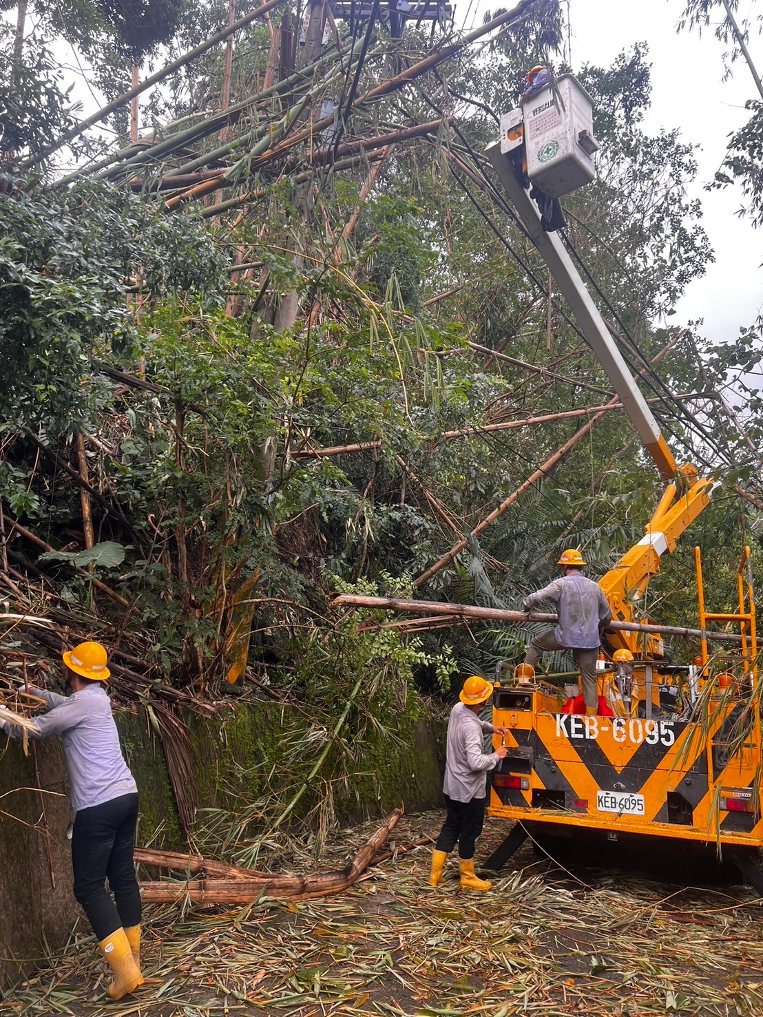 ↑圖說:錫安山受風災影響路斷桿倒,台電鳳山區處加派人力搶修。(圖片來源:台電高雄區處提供)