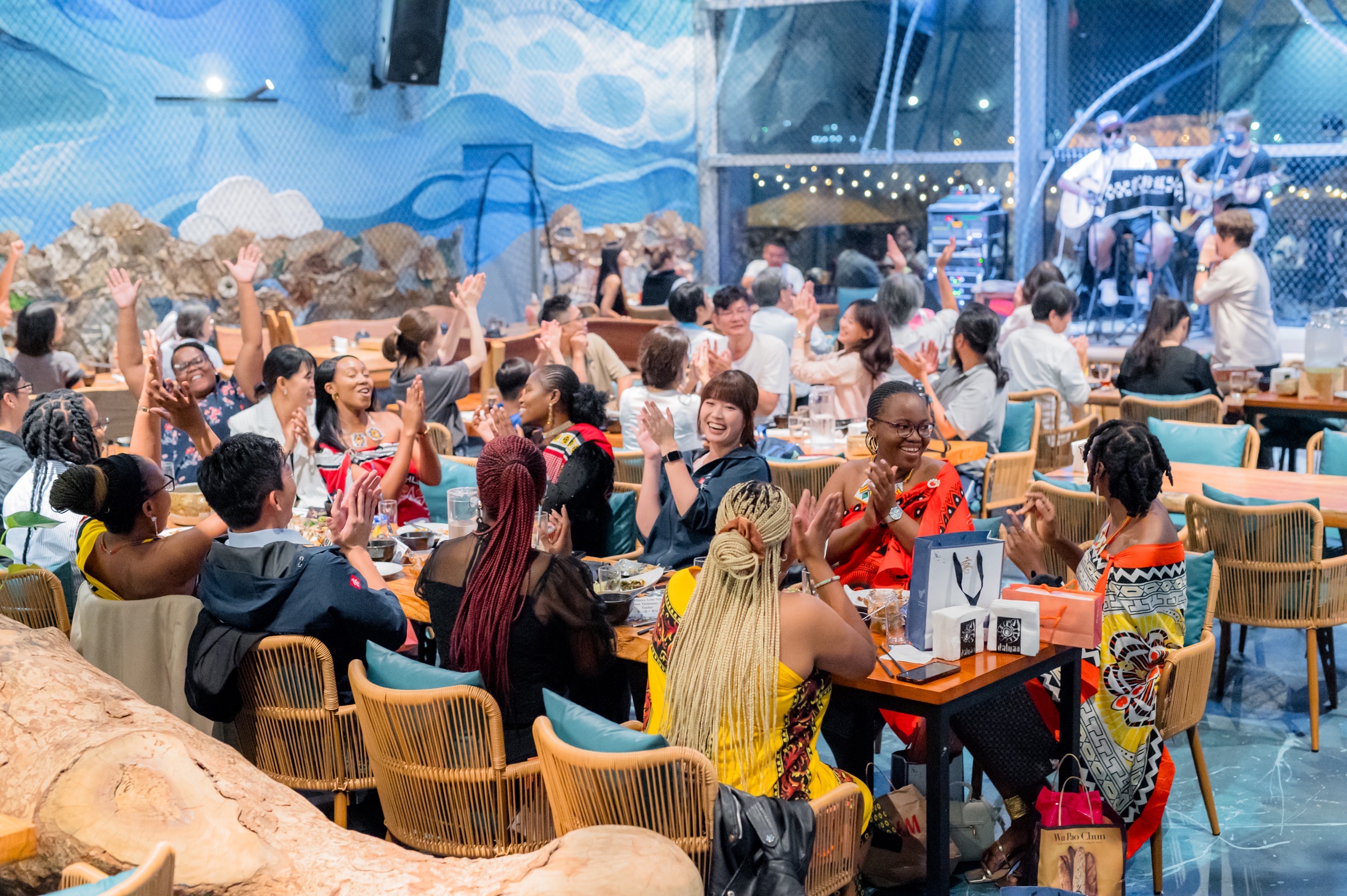 10名史瓦帝尼的外籍教師展現活力,跟著原住民歌手共同唱跳帶動現場氣氛,連不認識的用餐民眾也紛紛報以熱切掌聲!史國青年教師表示,有機會爭取到高雄教學,他們感受到不僅是城市的繁榮,更重要的是市民的友好與包容。「我們全力幫助學生提升英語能力,期盼進一步促進兩國之間的教育與文化交流。」高雄市政府未來也將持續推動與史瓦帝尼首都姆巴巴內市的友好關係,透過更多的文化教育合作,深化兩國邦誼與姊妹城市互動。