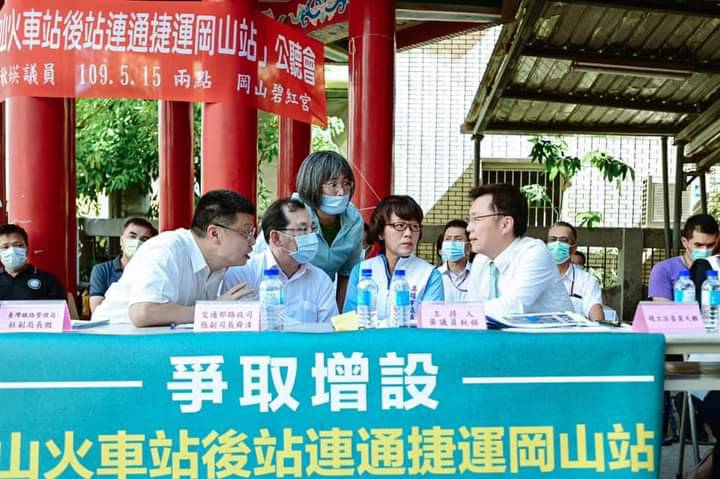 圖說:黃秋媖(右二)爭取增設岡山火車站後站連通捷運岡山站。(圖片來源:黃秋媖臉書)