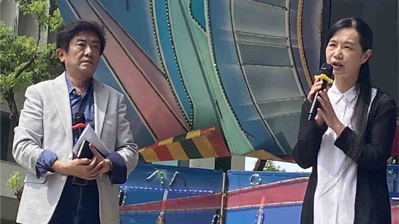 ↑圖說:到場聲援的中華民國兒童及老人照護協會常務理事劉銀冰(右)表示,2028年長照基金將耗盡,彭華幹則說政府怎麼能坐視菸稅不斷流入水貨商的口袋。(圖片來源:CLEAN AIR大聯盟提供)