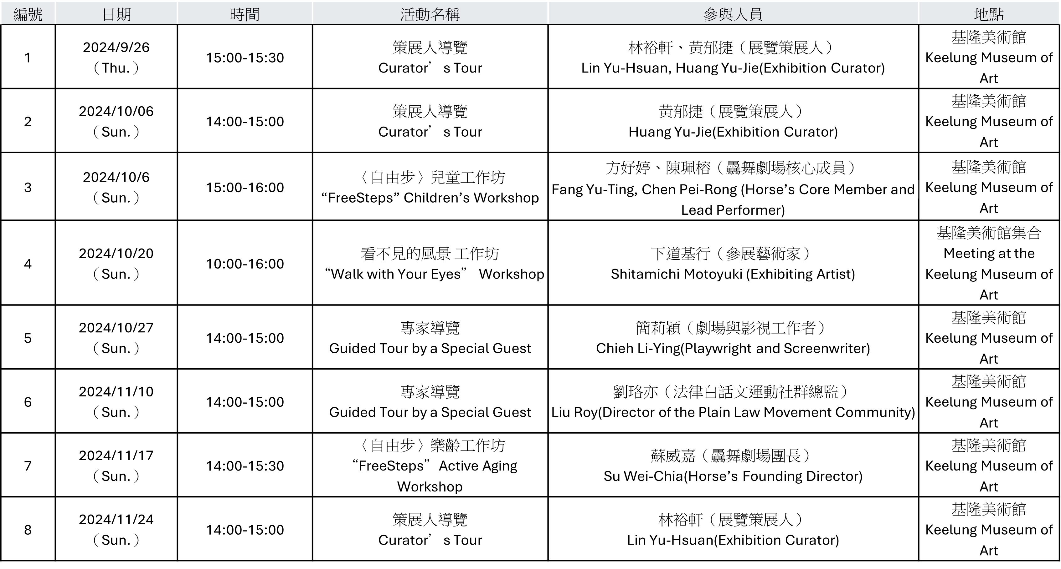活動場次表: