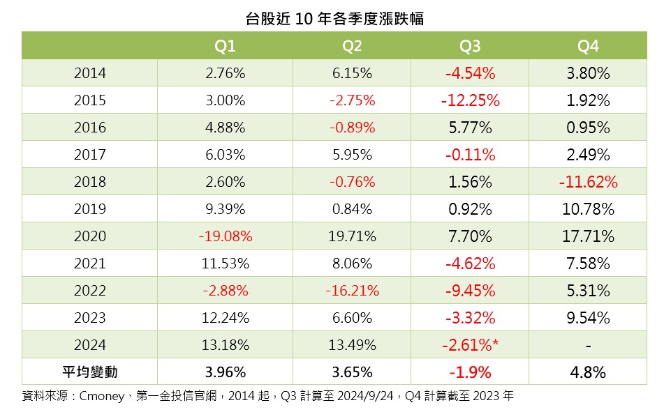 近11年台股各季漲跌統計!一表掌握 第一金投信看好Q4旺季行情
