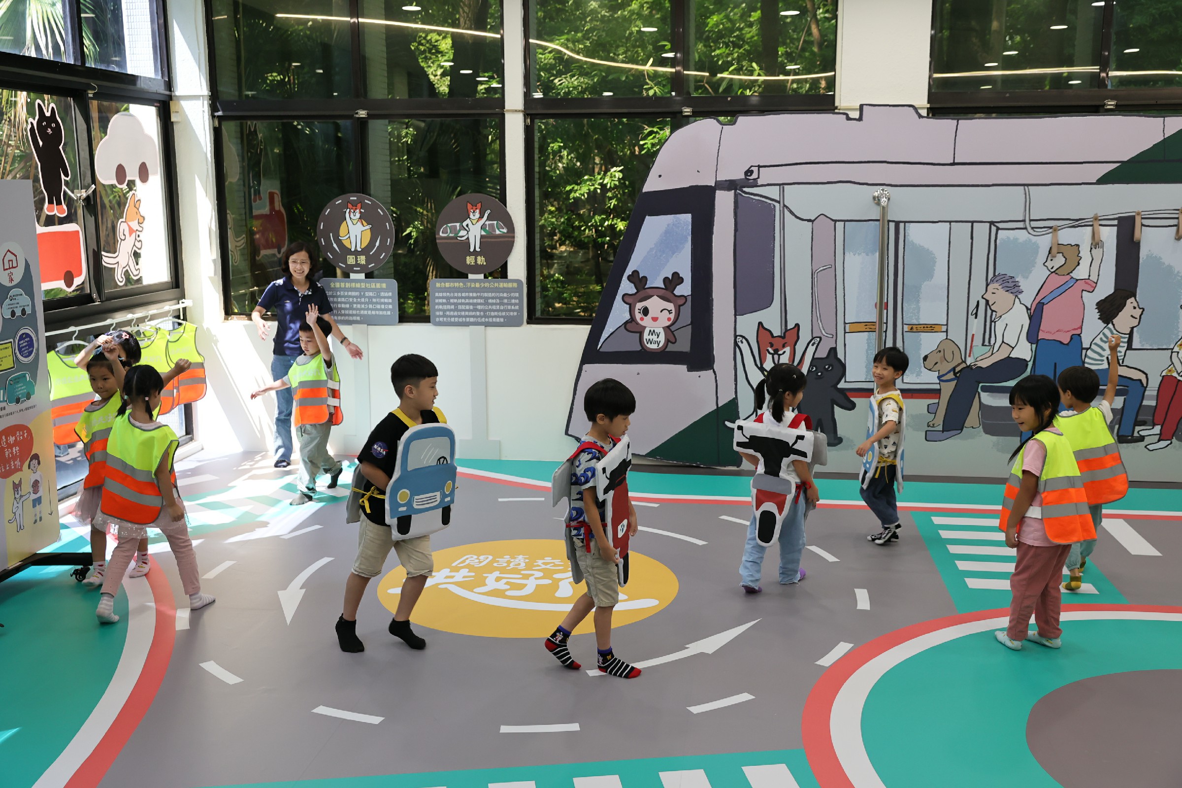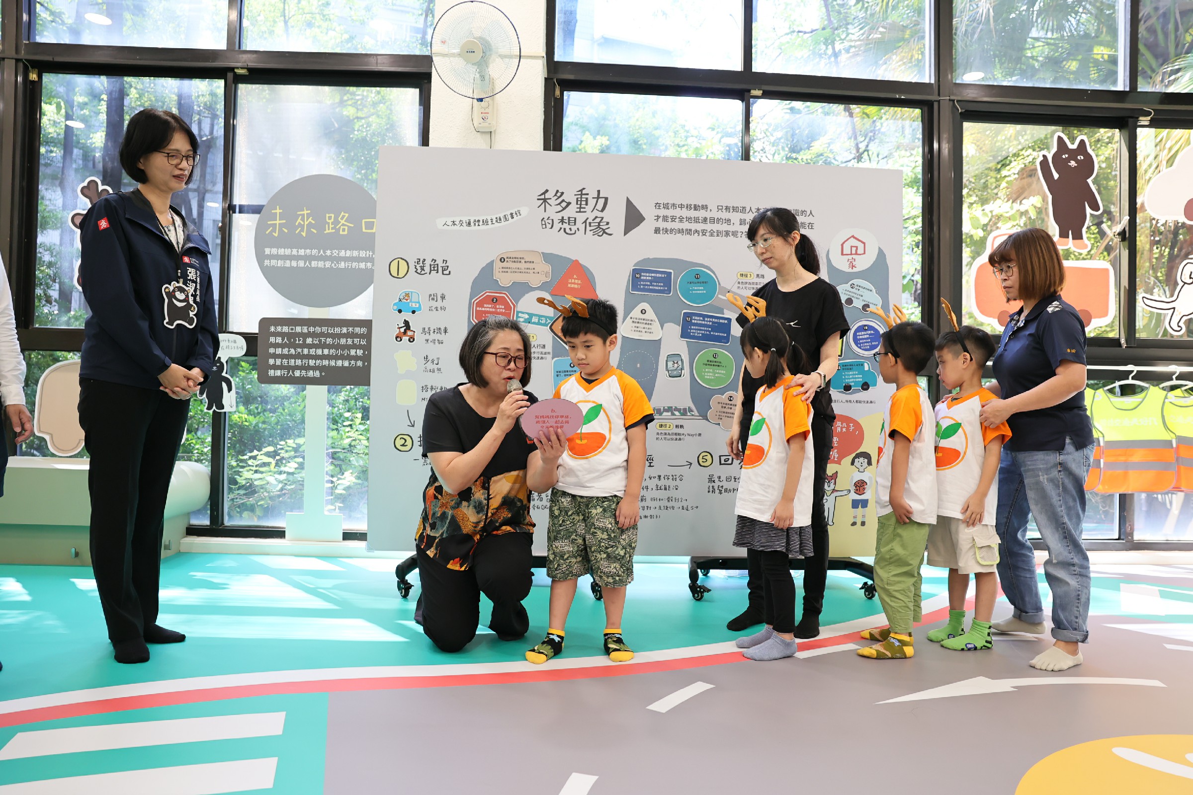 特展開幕時,鄰近華盛頓幼兒園的大象班小朋友參與了桌遊闖關及角色扮演活動,他們模擬行走於標線型社區圓環,透過實際體驗學習人本交通教育。這些小朋友在活動中,認真回答問題,並在每個路口自覺地執行「慢、看、停」的交通規範,不爭快、不超車,依照標線騎行。這種遊戲化學習方法不僅讓孩子們從小扎根交通安全知識,也增強了他們對道安規則的理解與遵守。