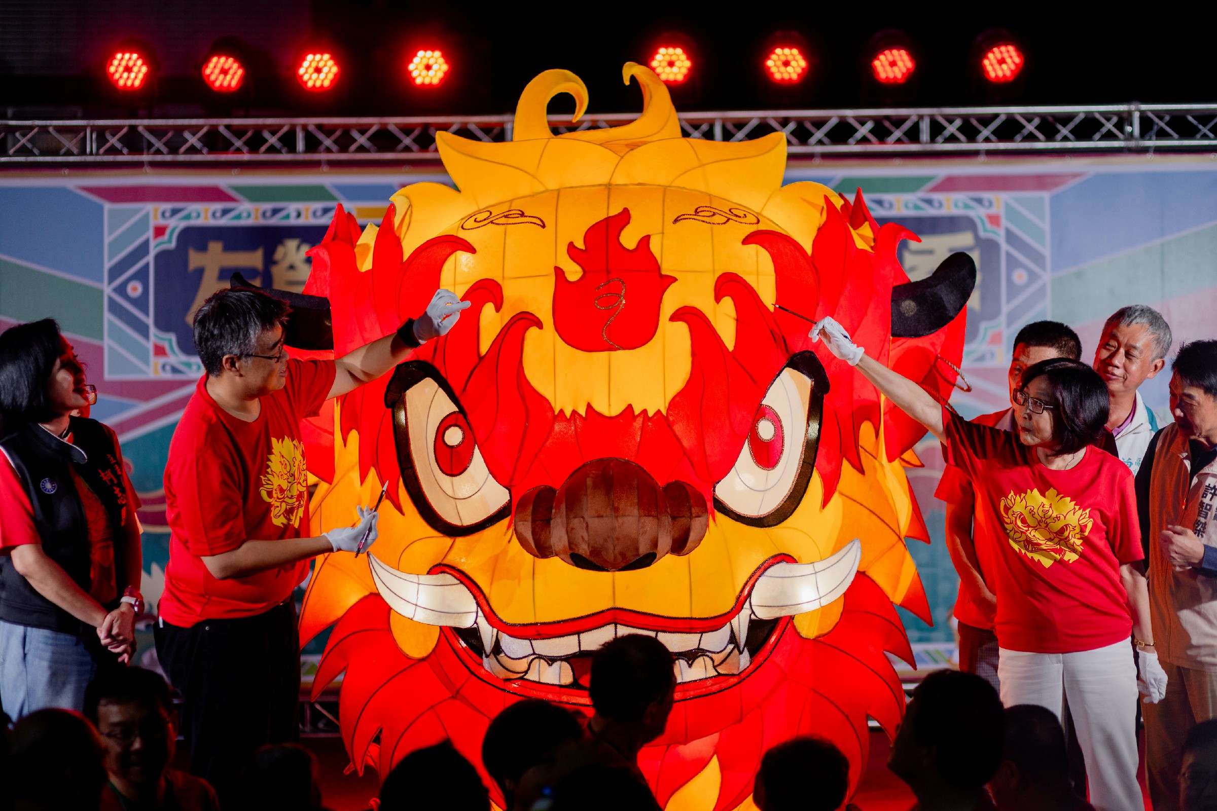 ↑圖說:李懷仁副市長及康裕成議長為火獅開光點睛(圖片來源:高雄市民政局提供)