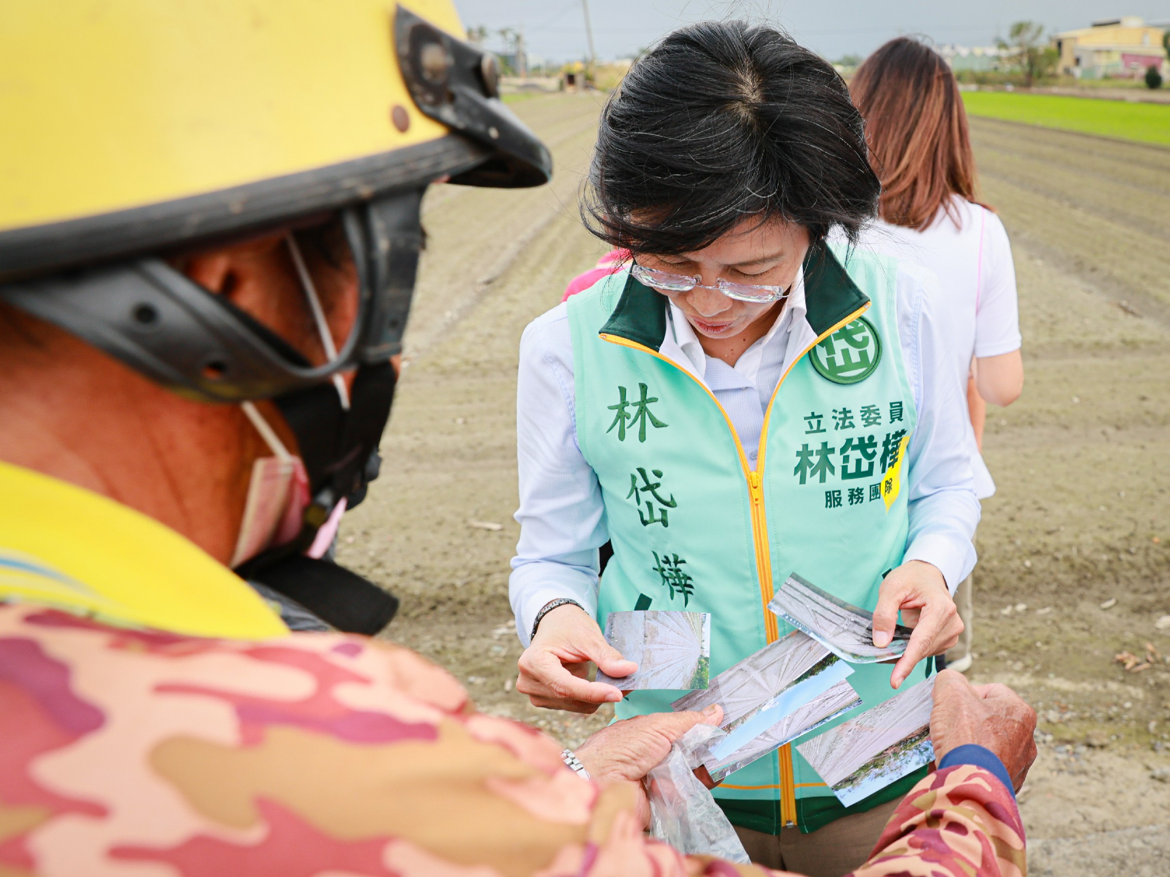 ↑圖說:林岱樺到田裡了解作物損傷情形。(圖片來源:林岱樺服務處提供)