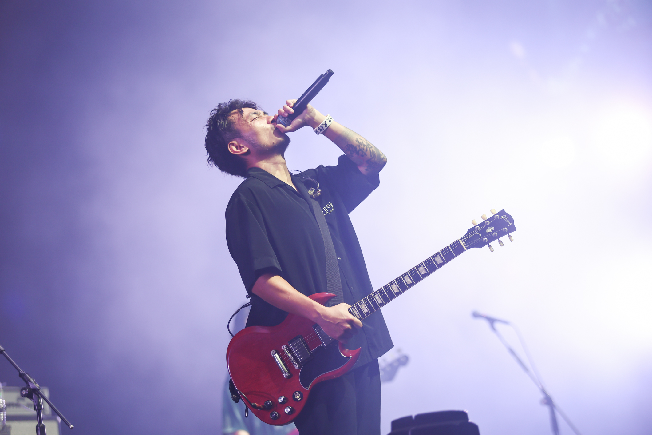 海音舞台由HUSH率先登場,他以獨特深沉且富有層次的演出風格吸引全場,展現音樂中流轉的細膩與優雅。HUSH在演唱間也不忘與觀眾互動,幽默地說道:「如果激凸的話請跟我說,我請他們把冷氣關小一點!」讓現場氣氛輕鬆愉快。接著,理想混蛋在舞台上帶來最新單曲《頑強》的完整首演,這首歌充滿力量與堅持,令粉絲們深受感動。現場有歌迷手持應援牌,提前為理想混蛋的七週年慶祝,氣氛十分溫馨。