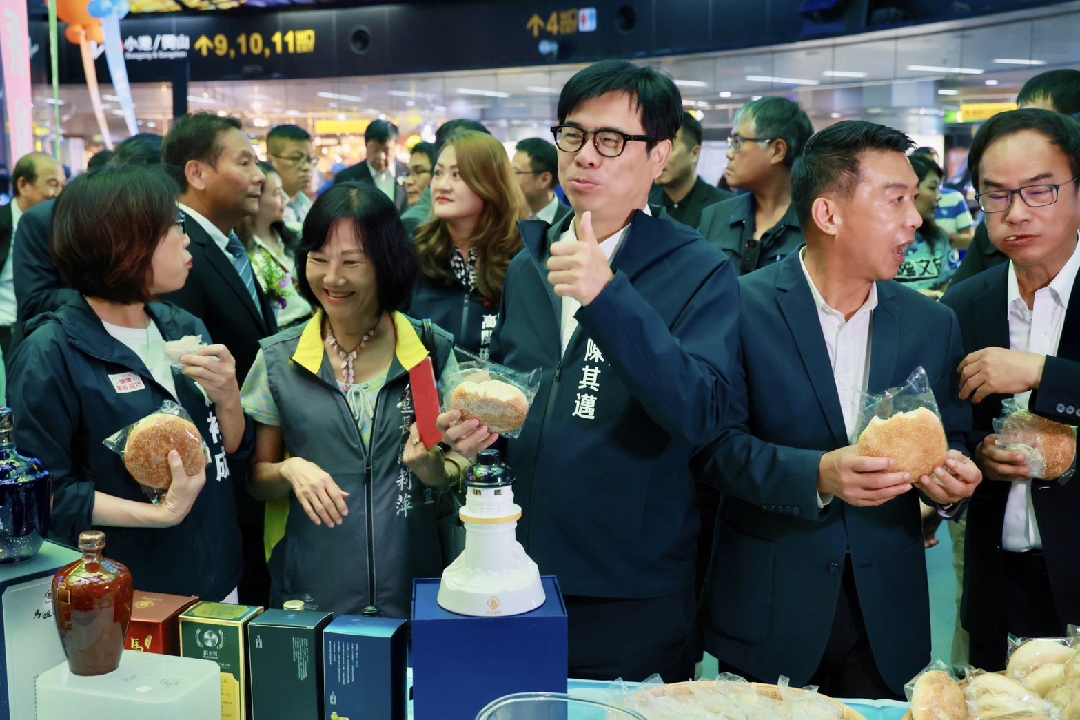 ↑圖說:陳其邁與來賓一同品嘗現場展示的多項馬祖特色美食。(圖片來源:高雄市政府提供)