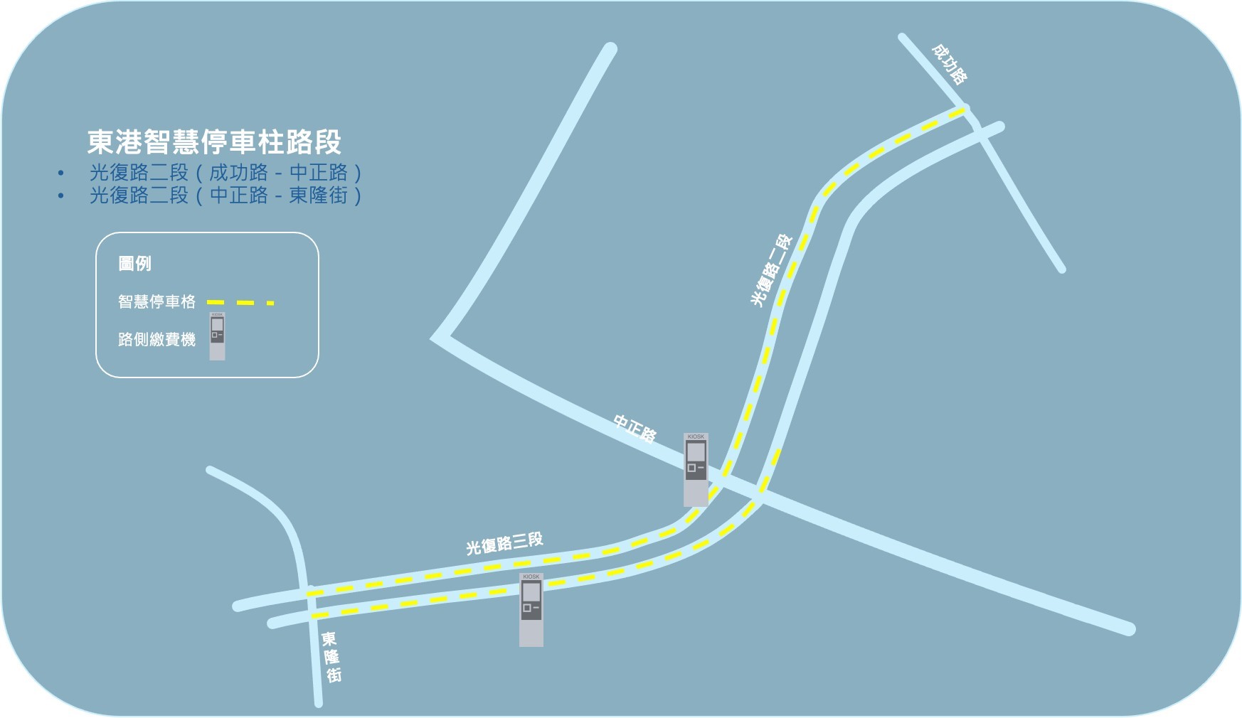 圖說:東港鎮光復路二段及三段正式啟用智慧停車柱。(圖片來源:屏東縣政府提供)