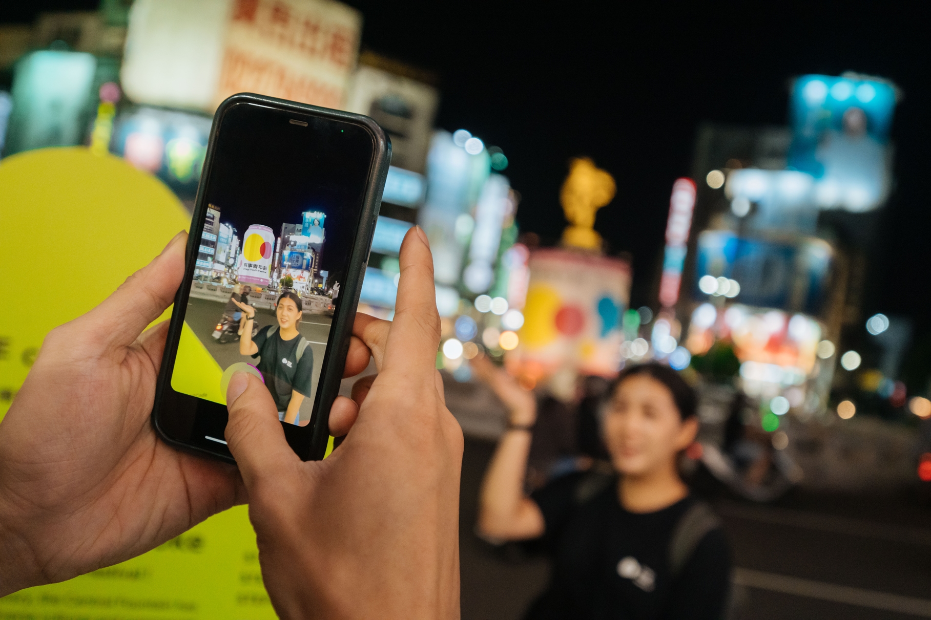↑圖說:創意裝置-百年噴水池化身為汽水瓶AR 特效拍照互動(圖片來源:嘉義市智科處提供)