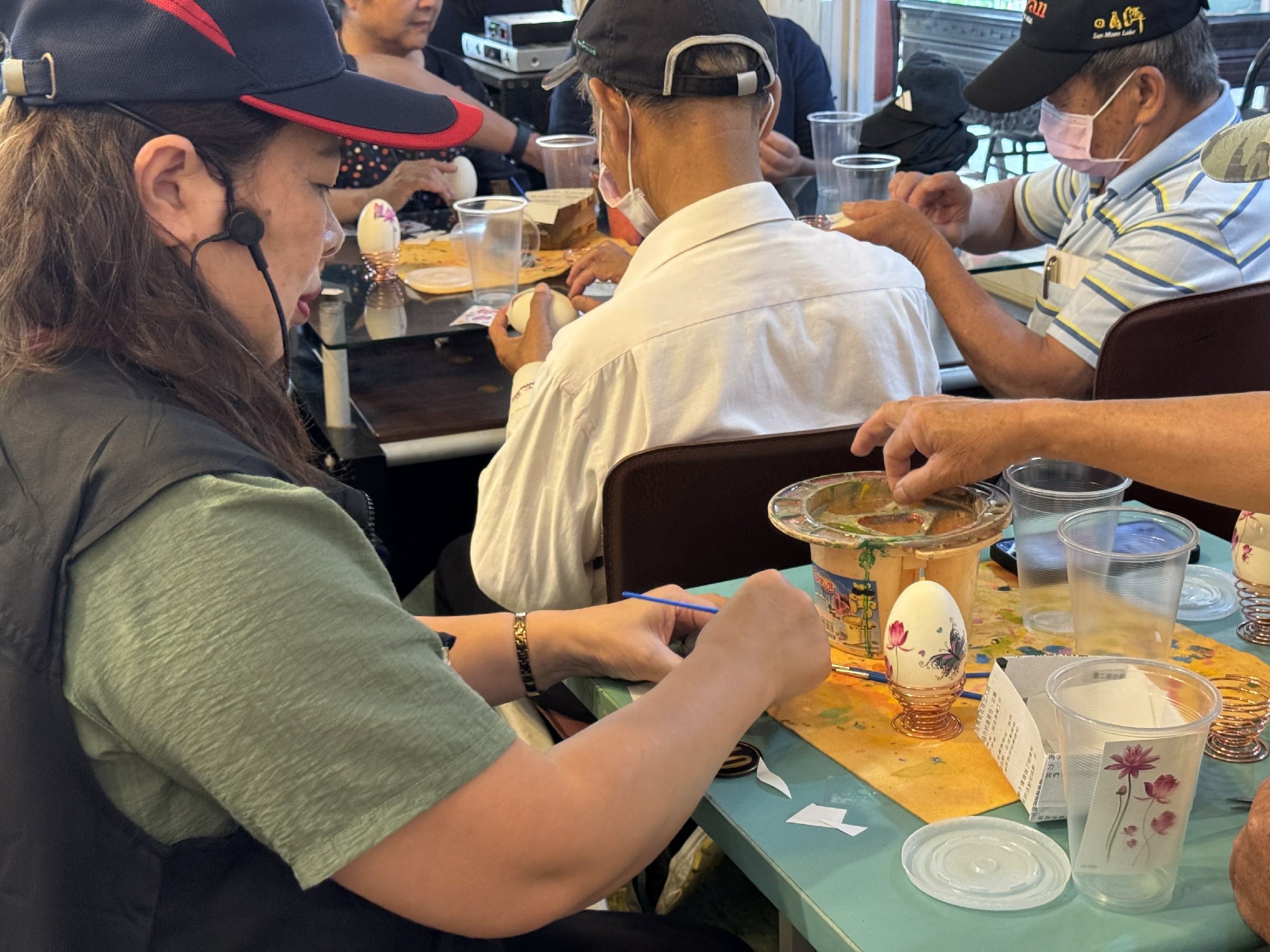↑圖說:90位遊客在九品蓮花生態教育園區體驗蓮花鵝蛋彩繪活動。(圖片來源:台南市農業局提供)
