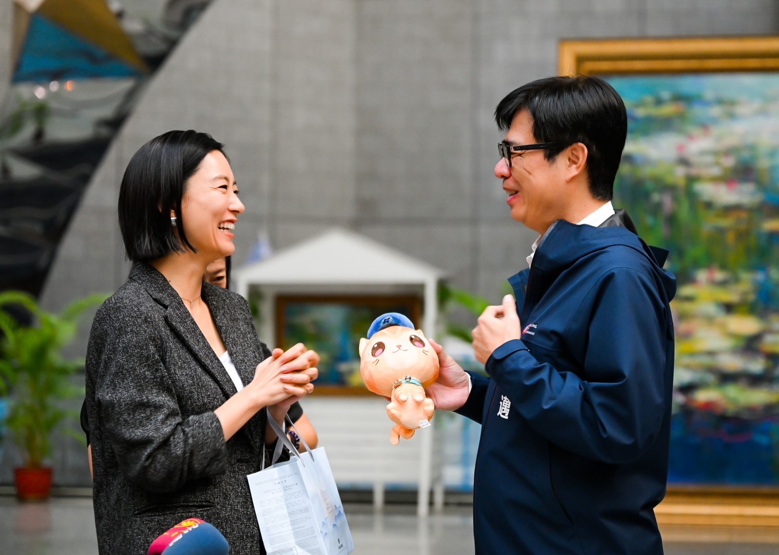 ↑圖說:水川麻美對陳其邁市長贈送的蜜柑玩偶笑開懷(圖片來源:零日文創提供)