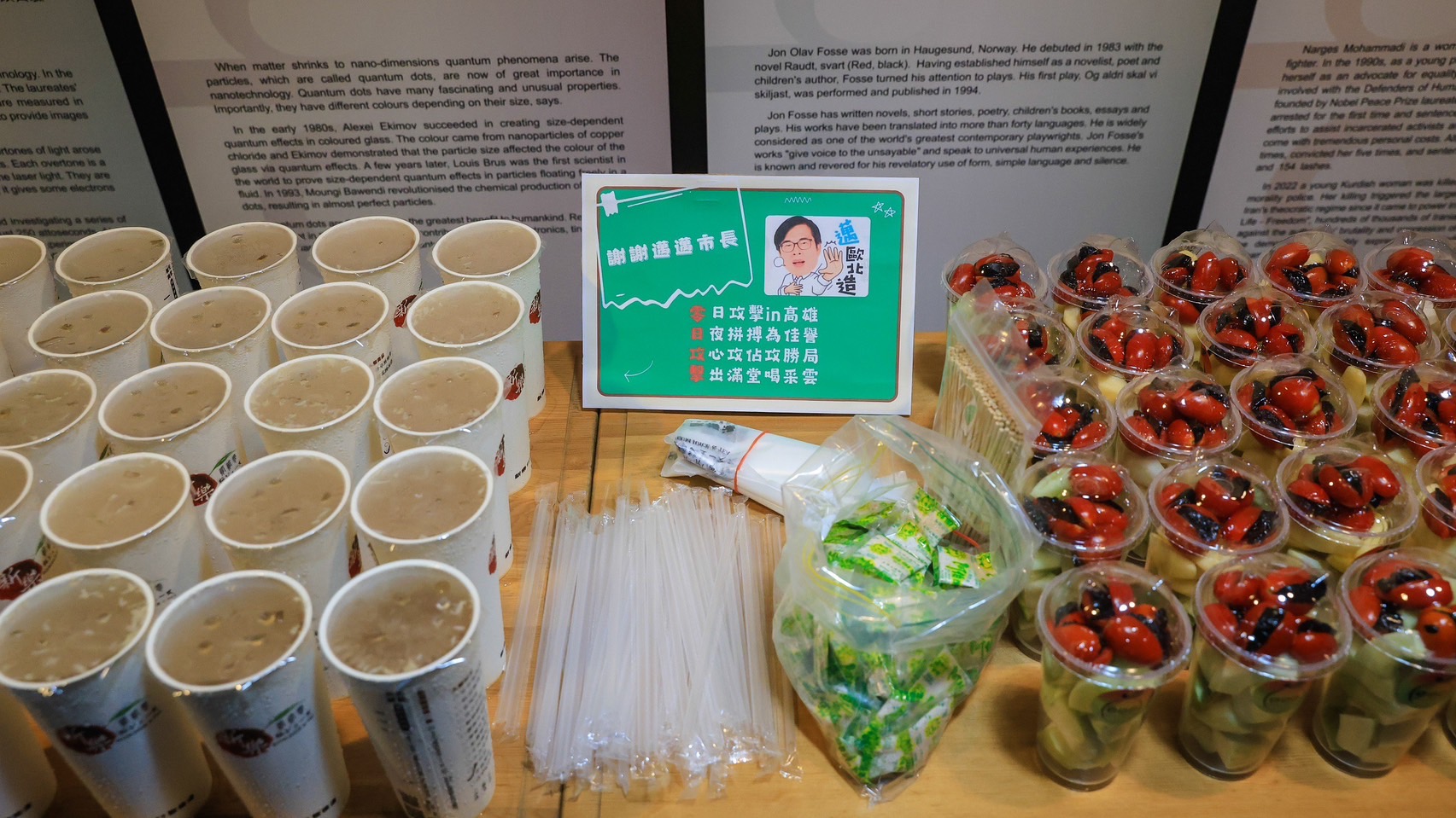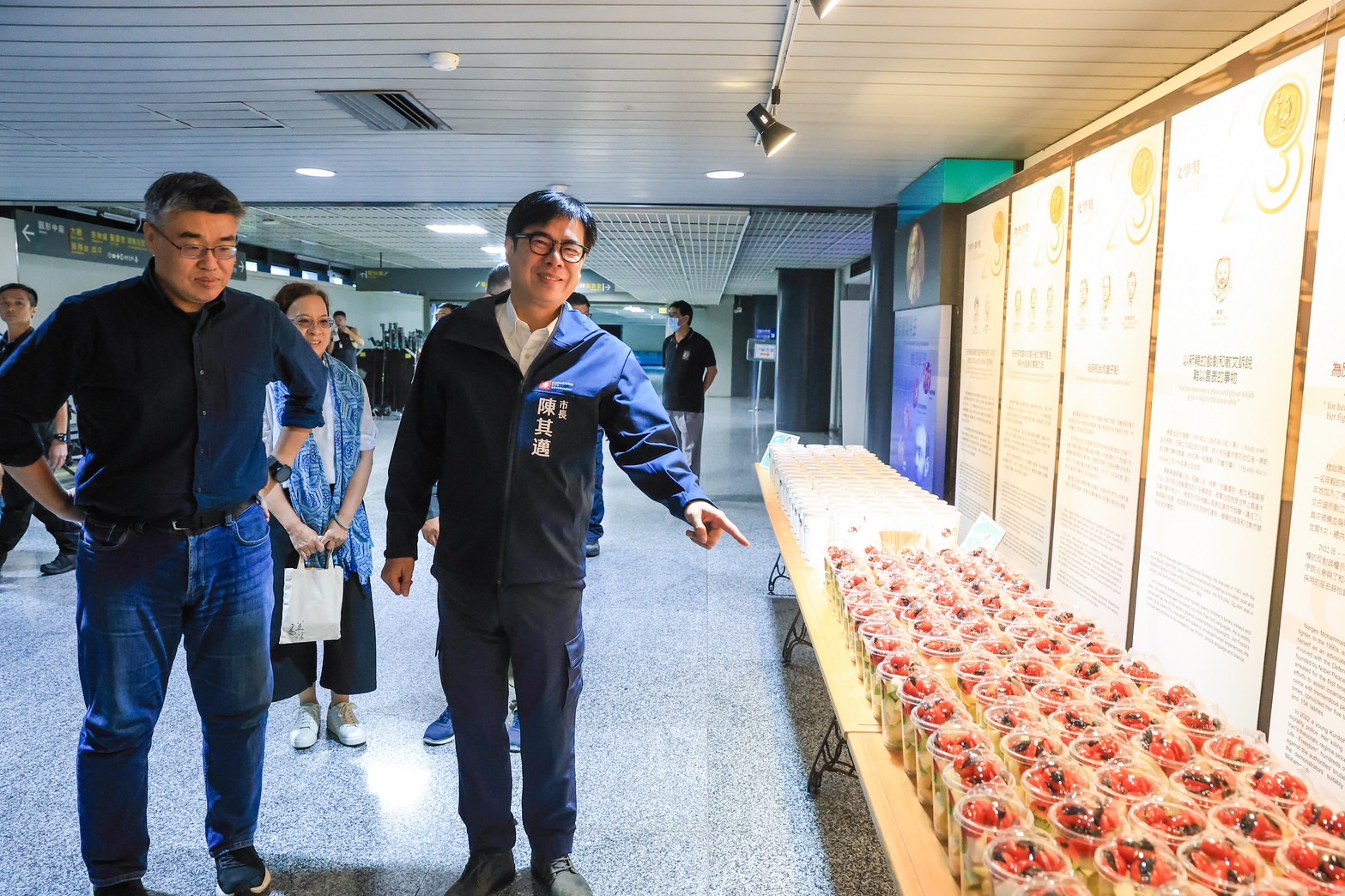 ↑圖說:陳其邁到高雄科工館探班,準備慰勞品予辛勞的劇組成員(圖片來源:高雄市政府提供)