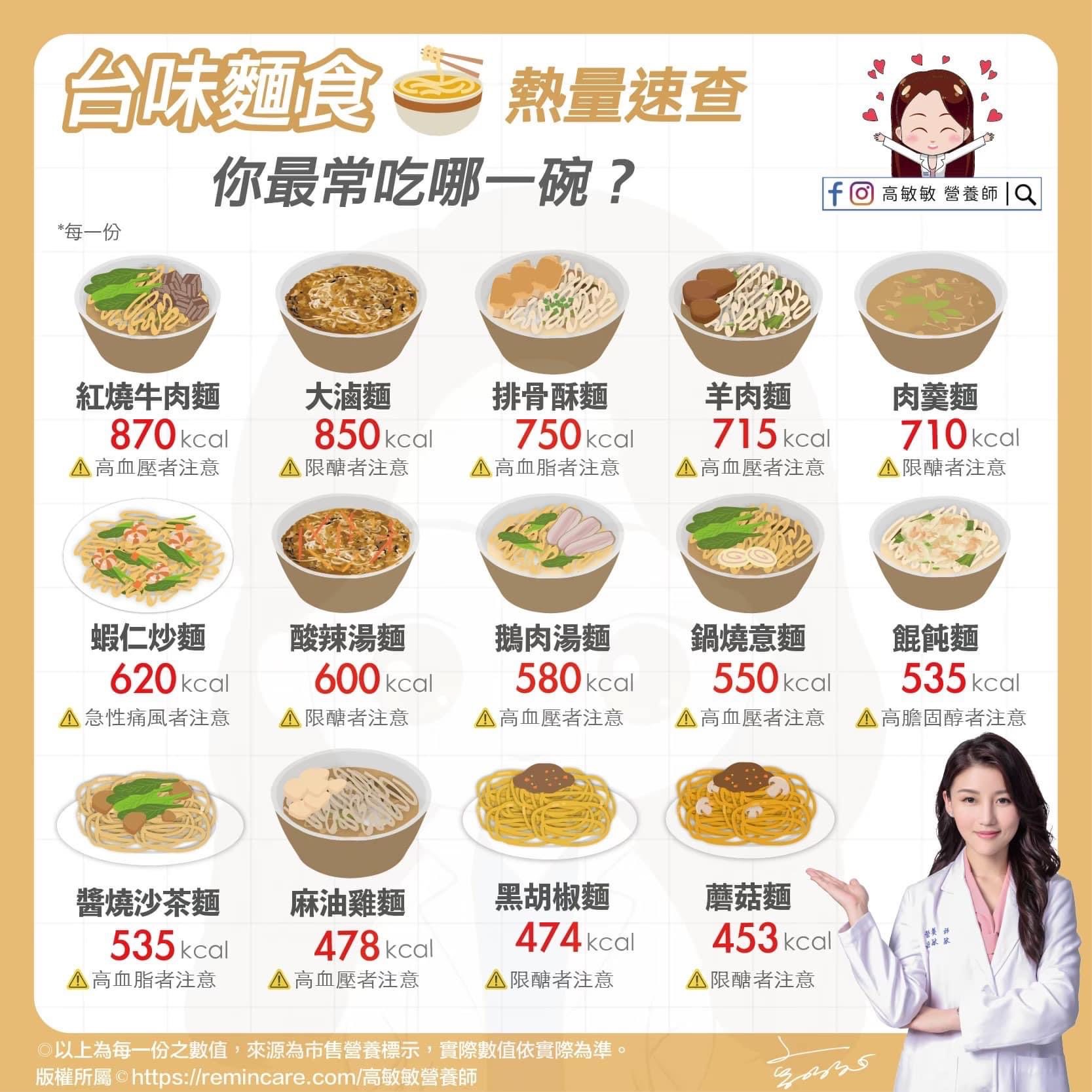 奉上台味麵食熱量速查,麵控趕快看過來!