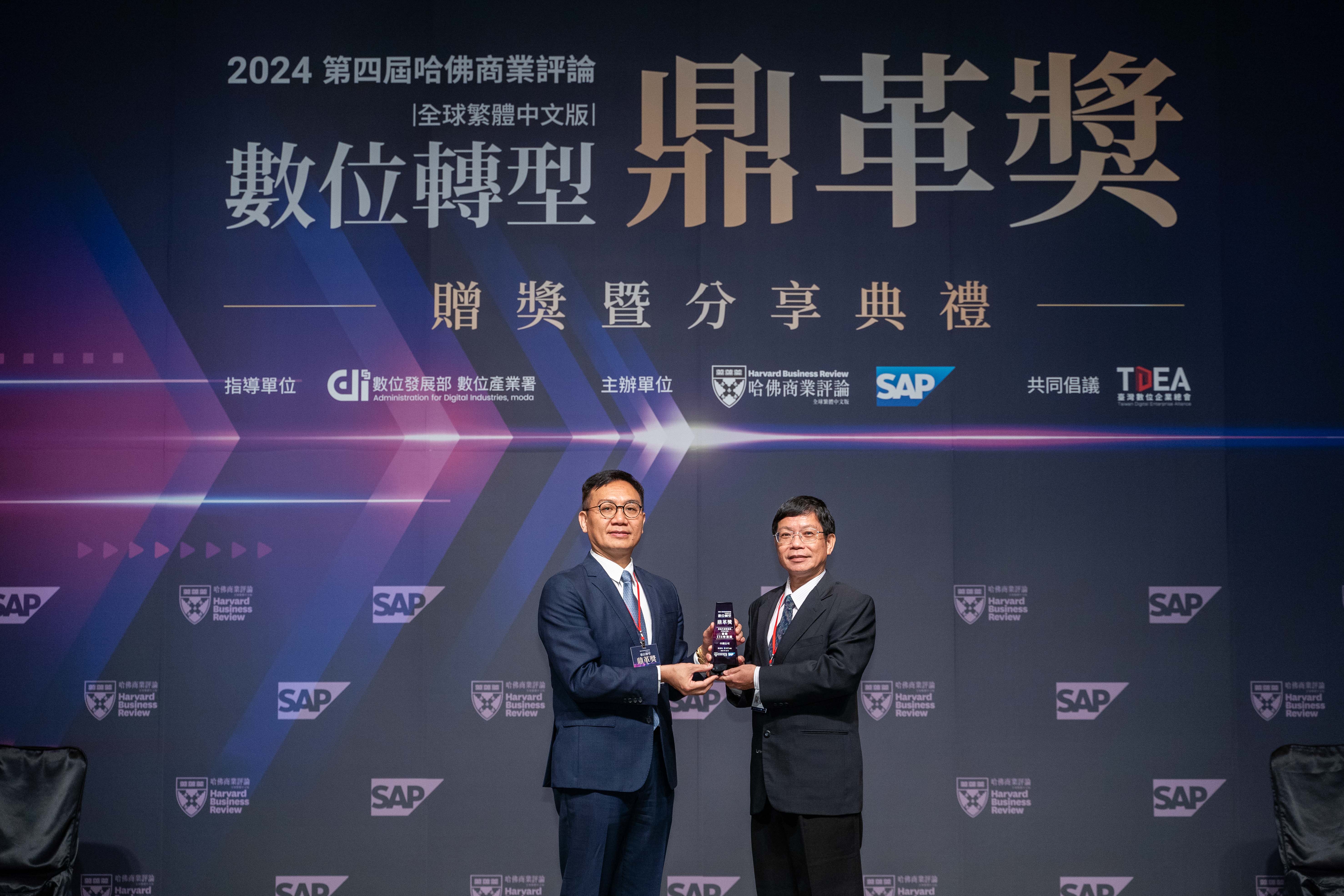 圖說:中鋼獲哈佛商業評論鼎革獎 ,由中鋼總經理陳守道(右)代表受獎。(圖片來源/中鋼提供)