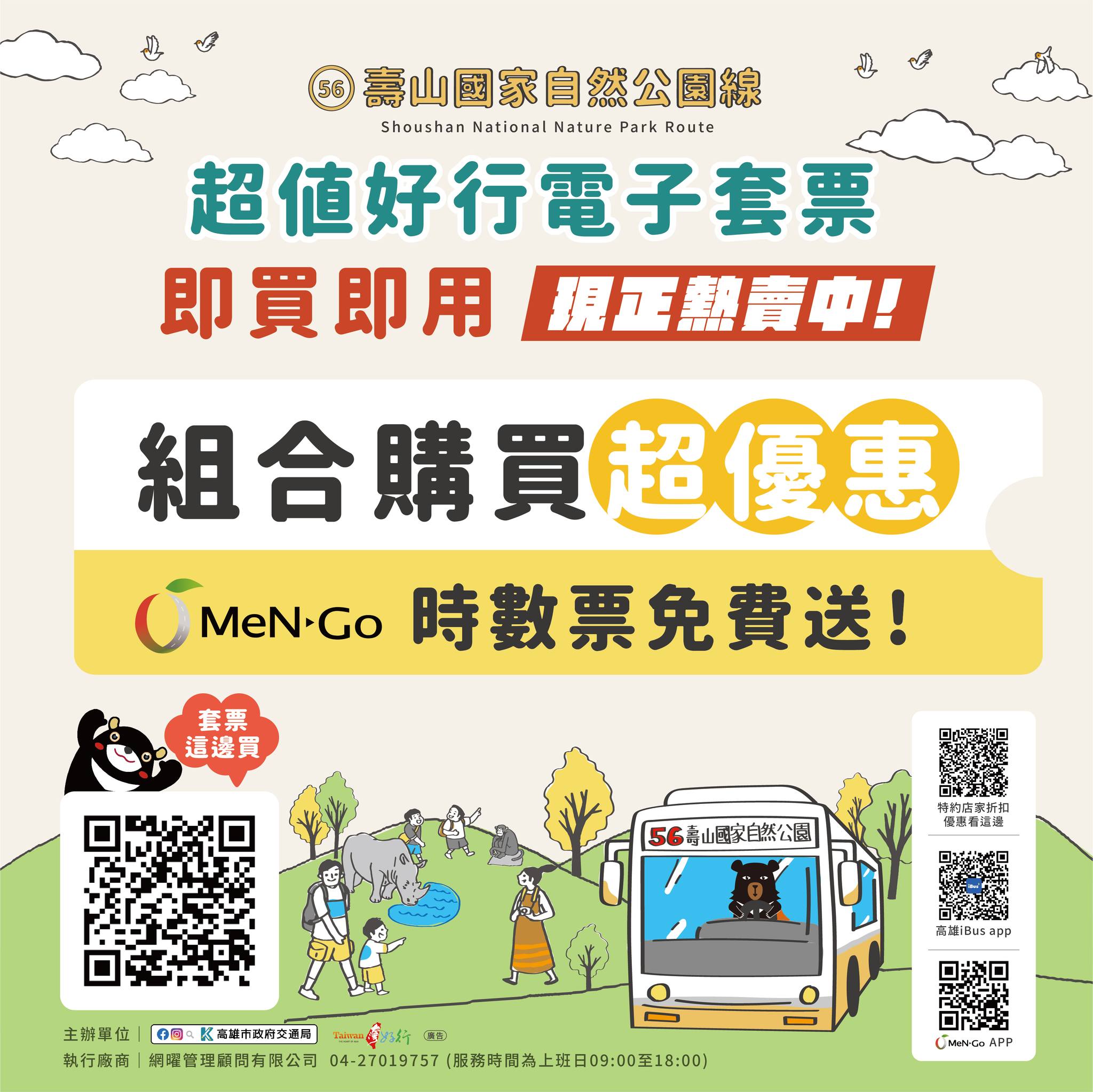 為了鼓勵民眾使用公共運輸探索高雄市,市府交通局針對「台灣好行-56壽山國家自然公園線」推出超值的好行電子套票。這款套票結合了MeN Go的時數票以及高雄市的熱門旅遊景點,提供一日及二日套票選擇,售價從265元起,票價最高可享46折優惠,最多能省下600元。這項優惠鼓勵旅客以輕鬆、自由的方式遊覽高雄。