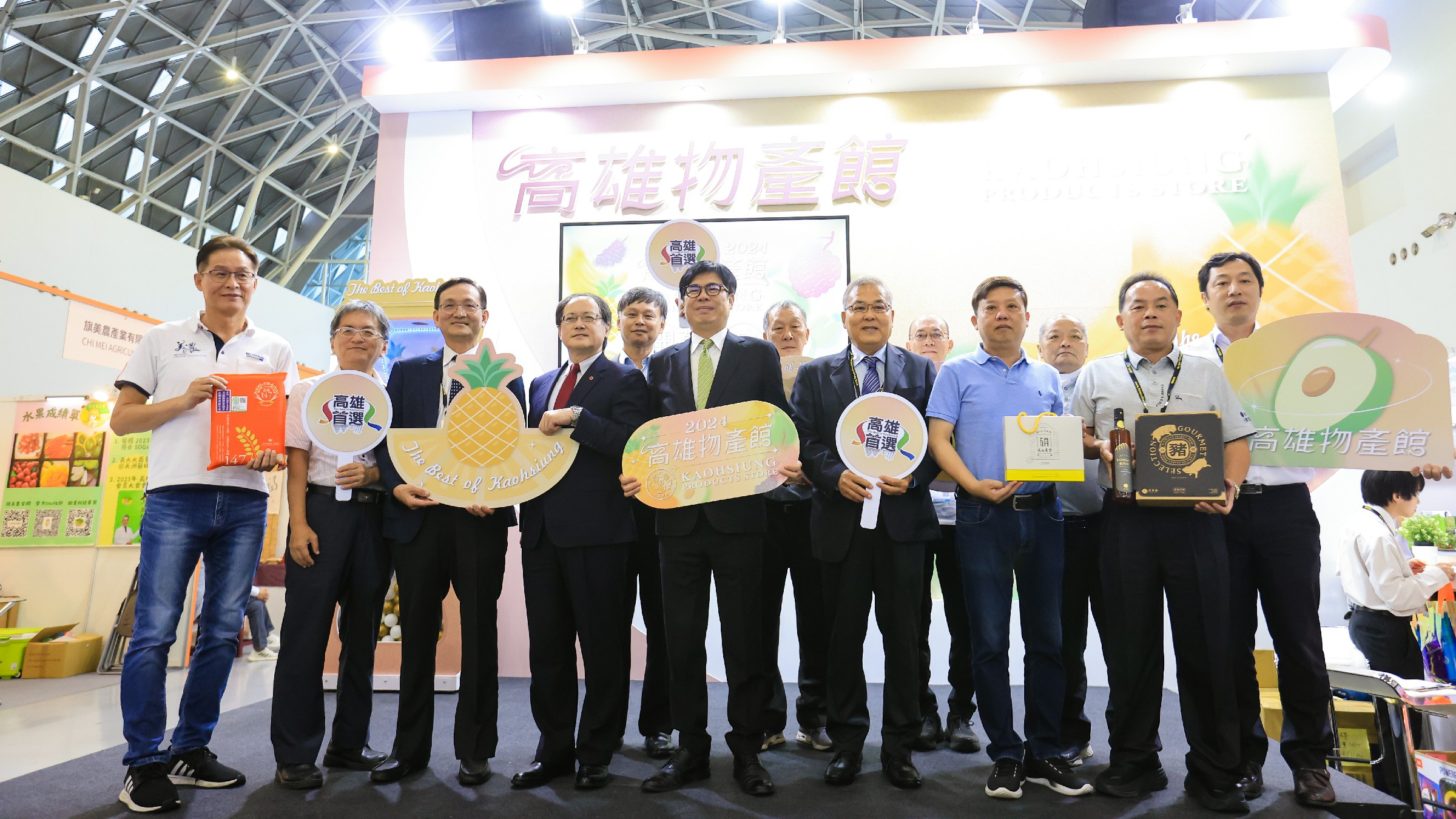 ↑圖說:陳其邁領軍「高雄首選」品牌行銷,展示18家農民團體及農企業的優質產品。(圖片來源:高雄市農業局提供)