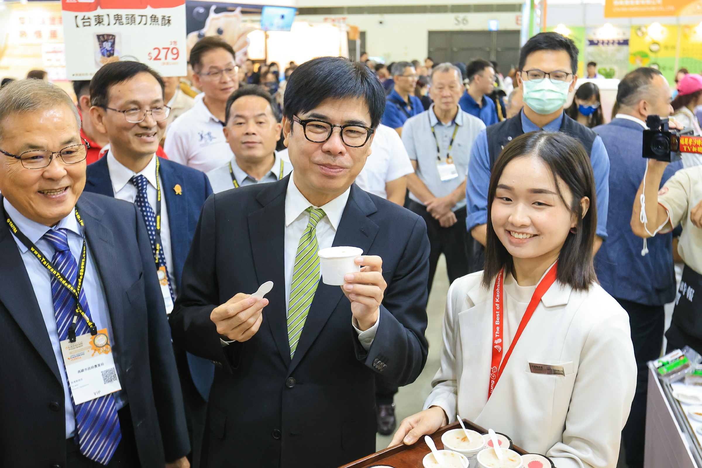 陳其邁在致詞時提到,受到颱風影響,今年的農漁產品數量有所減少,因此更顯得此次展會的產品珍貴。他希望藉由這次食品展,消費者能抓住機會享用高雄的美味產品,同時促進銷售。他還強調,市府將繼續努力開拓更多國際市場,分散銷售風險,穩定農漁民的收益,進一步打造高雄「首選」品牌,讓高雄的優質農漁產品在國際市場上發光發熱。