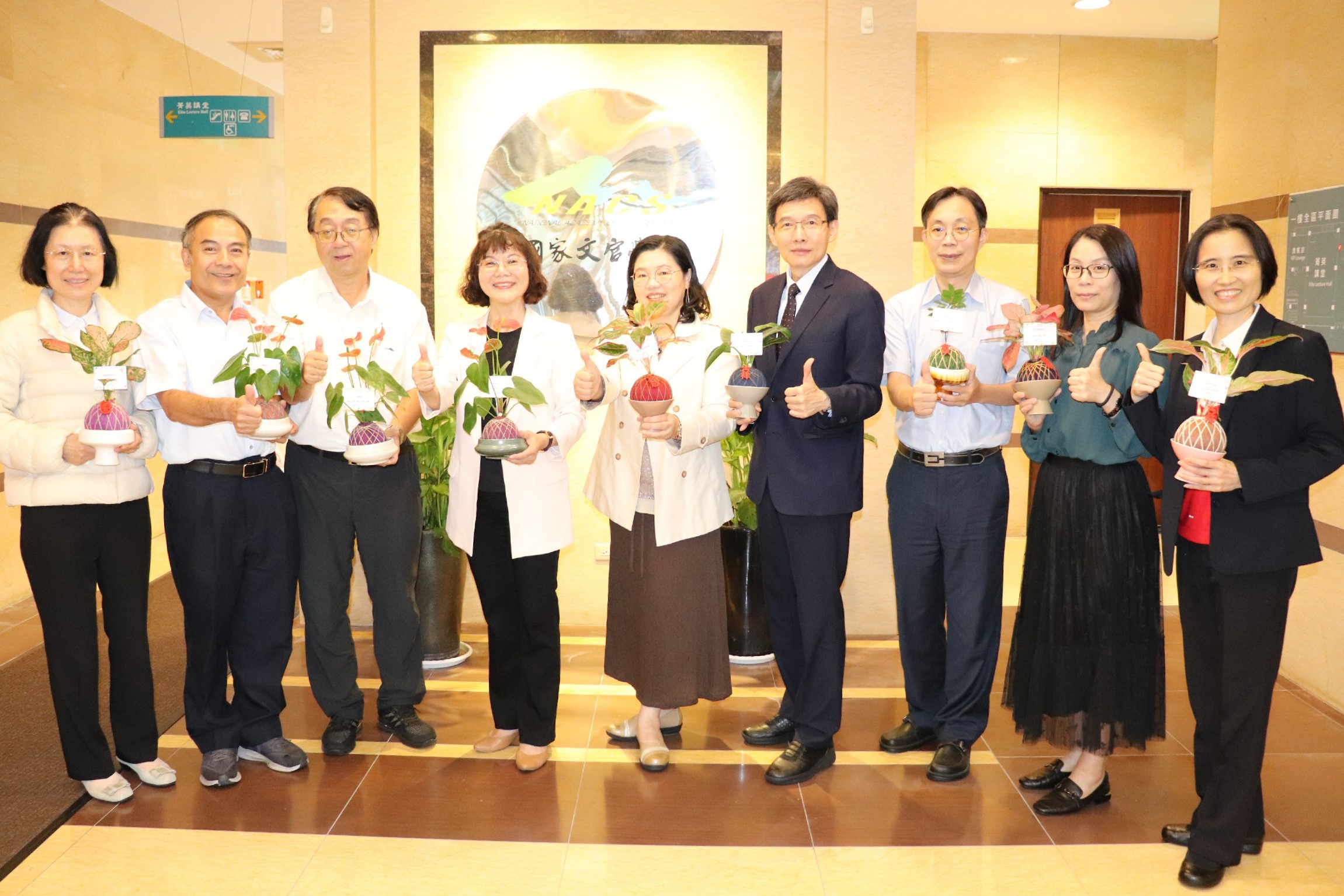 保訓會主委蔡秀涓熱情歡迎來自南方的盟友——高雄空大團隊,並對國家文官學院高雄園區在高雄空大落腳的支持表達高度感謝。蔡主委視察時,了解到學員對高雄空大的滿意度極高,稱讚陳校長領導的團隊在執行力與機動性方面表現出色。作為象徵友誼的見證,陳月端特別致贈蔡主委九顆象徵長久友誼的「苔球」。