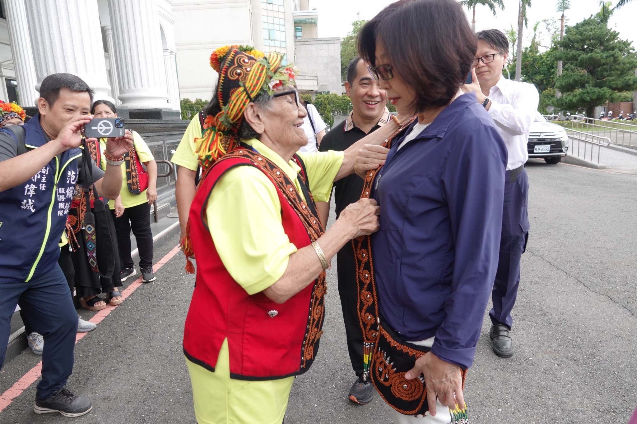 原鄉天籟之音在高雄市議會響起,茂林區萬山社區發展協會及萬山文建站25日到議會參訪,議長康裕成親自接待遠道而來的部落耆老,長輩也以原鄉部落美妙歌聲向康裕成表達感謝,歡樂氣氛感染嚴肅的議會。