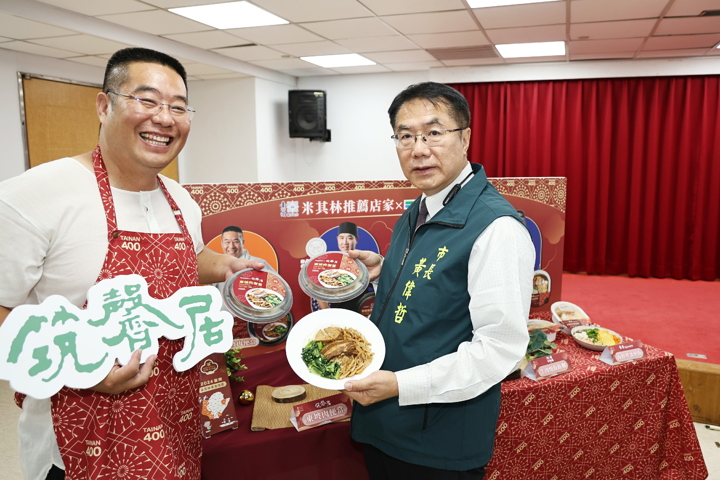 觀光旅遊局指出,「臺南400聯名鮮食」系列,以台南四大米其林餐廳的經典菜色為靈感,共推出四道風味產品,帶來地道的台南風味,其中東坡肉便當由筑馨居的經典東坡肉改良,滷汁燉煮的五花肉搭配老滷筍乾、蒜炒青江菜和油豆腐,口味濃郁;海鮮烘蛋燴飯來自東香台菜的海鮮烘蛋,厚實蔬菜烘蛋搭配蒜味高麗菜、魷魚、蝦仁及花蛤,再淋上秘製燴汁,呈現台菜的精緻風味;鮮蝦燴意麵由錦霞樓吳健豪主廚將炒鱔魚意麵升級,搭配鍋燒意麵、蒜炒高麗菜和古早味烏醋,風味十足;而牛肉燥飯糰則是阿村牛肉湯的牛肉燥飯以中藥材滷製牛絞肉,與Q彈米飯結合,創新而美味。