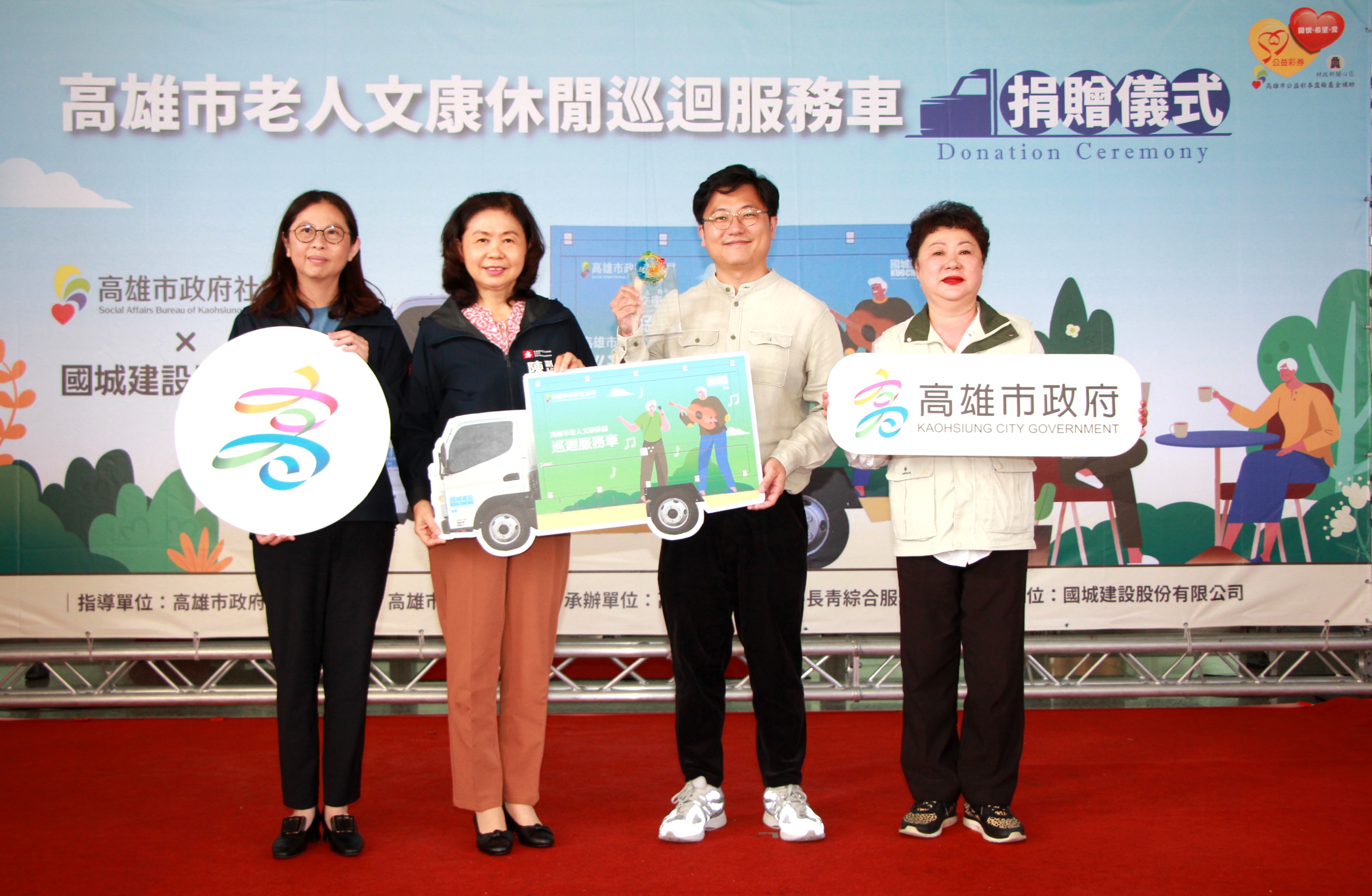 國城建設於28日捐贈一輛老人文康休閒巡迴服務車給高雄市政府,展現企業對社會福利服務的支持。這輛服務車將由社會局長青中心運用,旨在透過行動式資源服務來提升對高雄市長者的福利資源輸送能力,幫助長者在地老化,享受更便利的生活。