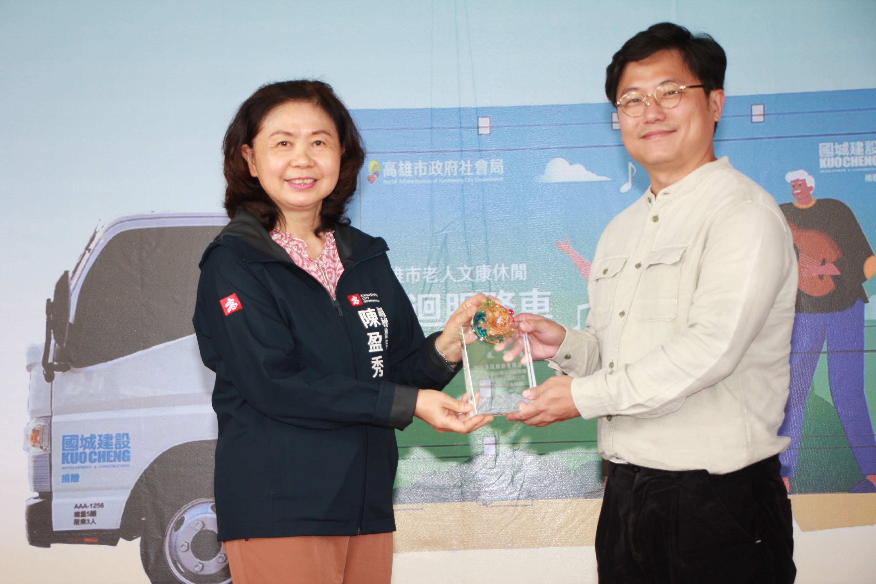 高雄市政府副秘書長陳盈秀出席捐贈典禮,並向洪嘉聰副總經理頒發獎座,代表市府對國城建設的善舉表示感謝,以肯定其善盡企業社會責任的努力,並強調公私合營的重要性,共同照顧弱勢民眾,讓社會的每一個角落都能被關愛。