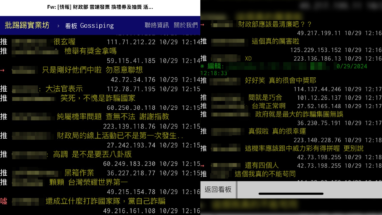 對此,網友們說,「這四個人運氣一定很好」、「被雷打到都沒這麼準」、「有的人就是天生命好欸」、「詐騙國家隊」、「連演一下都懶了」、「好強的偏財運」、「這些傢伙上輩子肯定拯救了世界」、「垃圾財政部 抽獎也要詐騙」、「只是剛好他們中啦 勿惡意聯想」、「政府就是最大的詐騙集團無誤」。