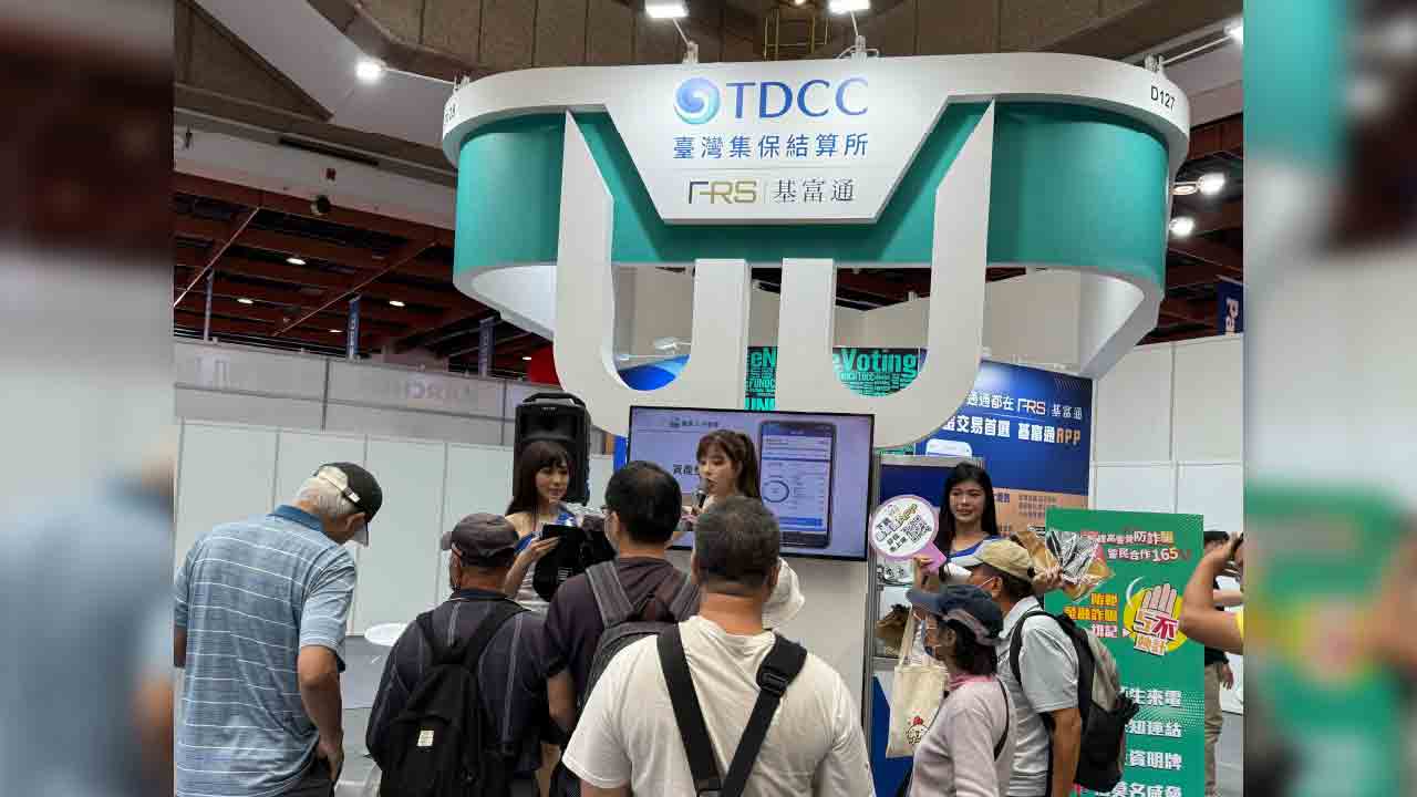 其他金融業者也不落人後,大拚人氣,像是集保結算所,透過互動遊戲吸引民眾,介紹自家服務(如上圖,記者李錦奇)。