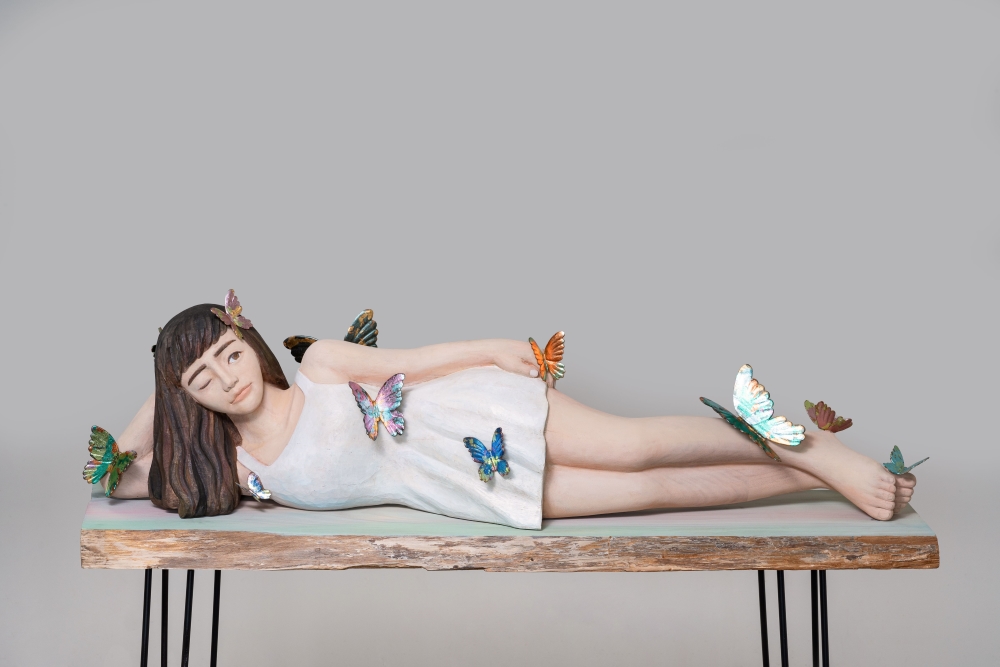 夢蝶絮語Dream shadows|江基名|樟木、美國檜木、箔、丙烯顏料、金屬|2024120x125x38cm