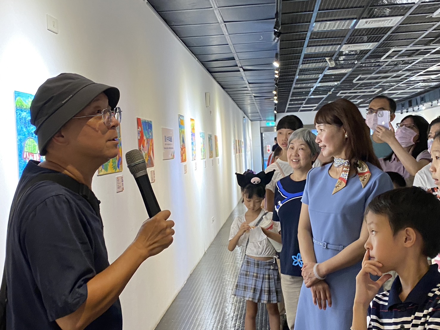↑圖說:屏東大學張重金教授導賞美濃藝穗節繪畫比賽優勝作品(圖片來源:高雄市客委會提供)