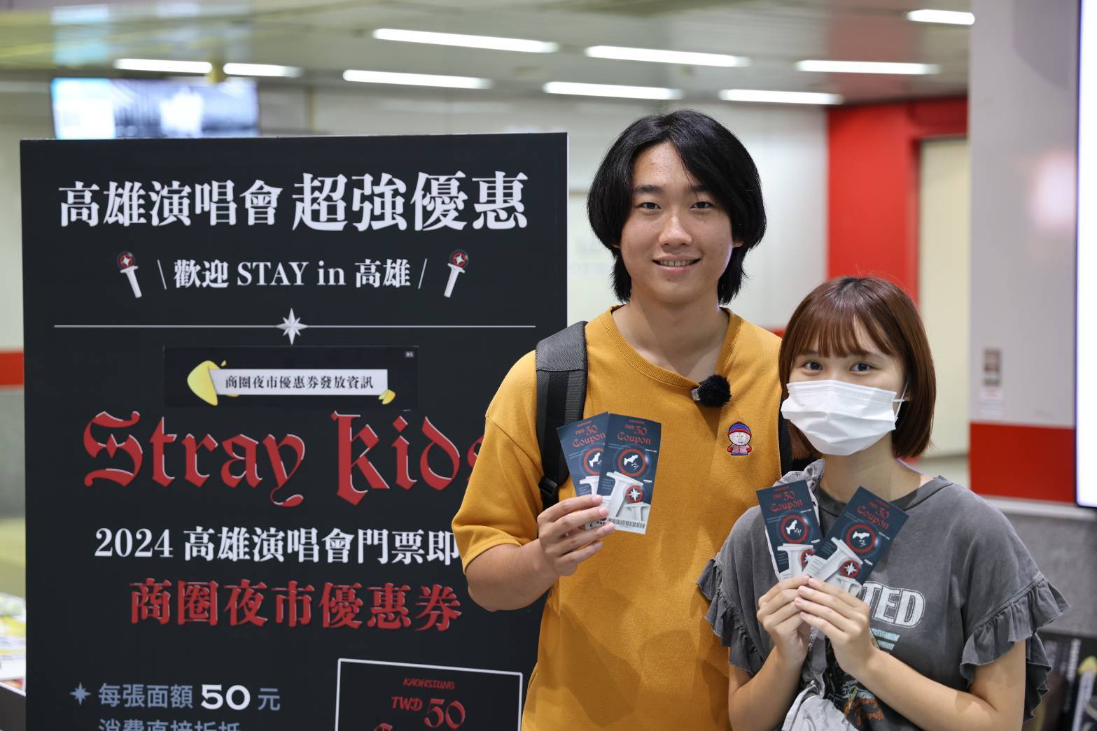 來自新北的阿惟表示,這次陪女朋友來高雄聽Stray Kids演唱會,在經發局IG看到活動資訊,特別跑到捷運站兌換商圈夜市優惠券,並打算於演唱會後一起逛逛瑞豐夜市,很開心高雄市政府能推出這麼棒的活動。