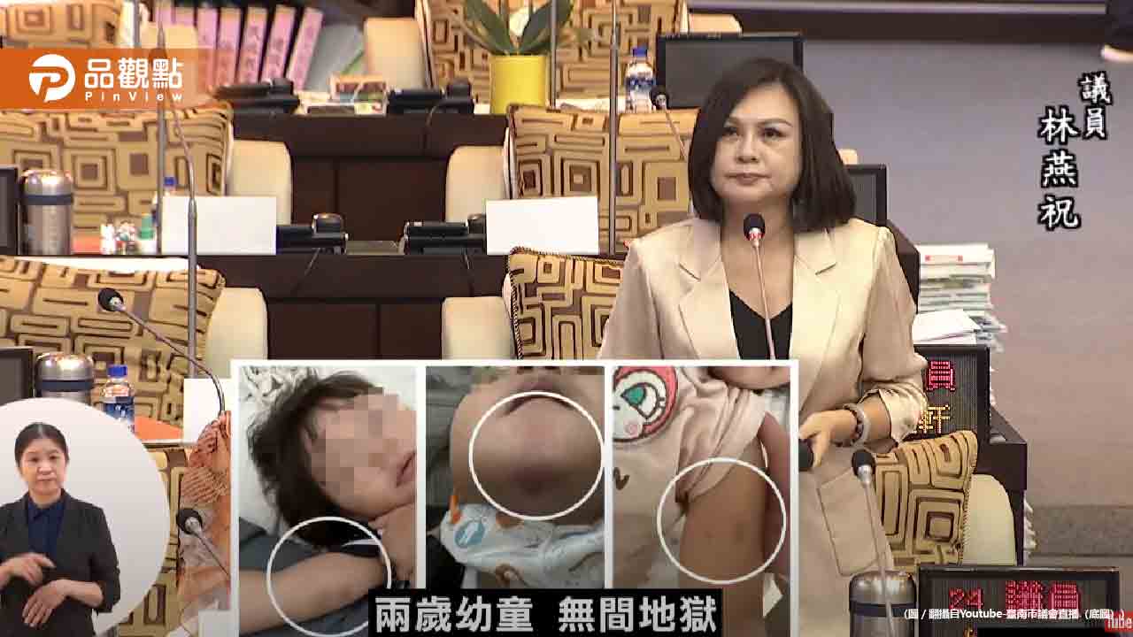台南市議員林燕祝今(5)日在議會質詢時,拿出一個約3公斤重的睡袋,表示一名2歲女童8月時在私立幼兒園換了新的幼保員後,生活猶如墜入地獄。監視器畫面顯示,幼保員利用其他幼童午睡時間,逼迫女童拖著沉重睡袋,並捏著女童嘴巴警告不准告訴媽媽,甚至強灌綠豆湯。另一段畫面則可看到,女童遭幼保員打屁股、掐脖子,導致下巴瘀青,更慘的是,女童來不及上廁所尿褲子,竟被幼保員拿吹風機熱風吹下體。