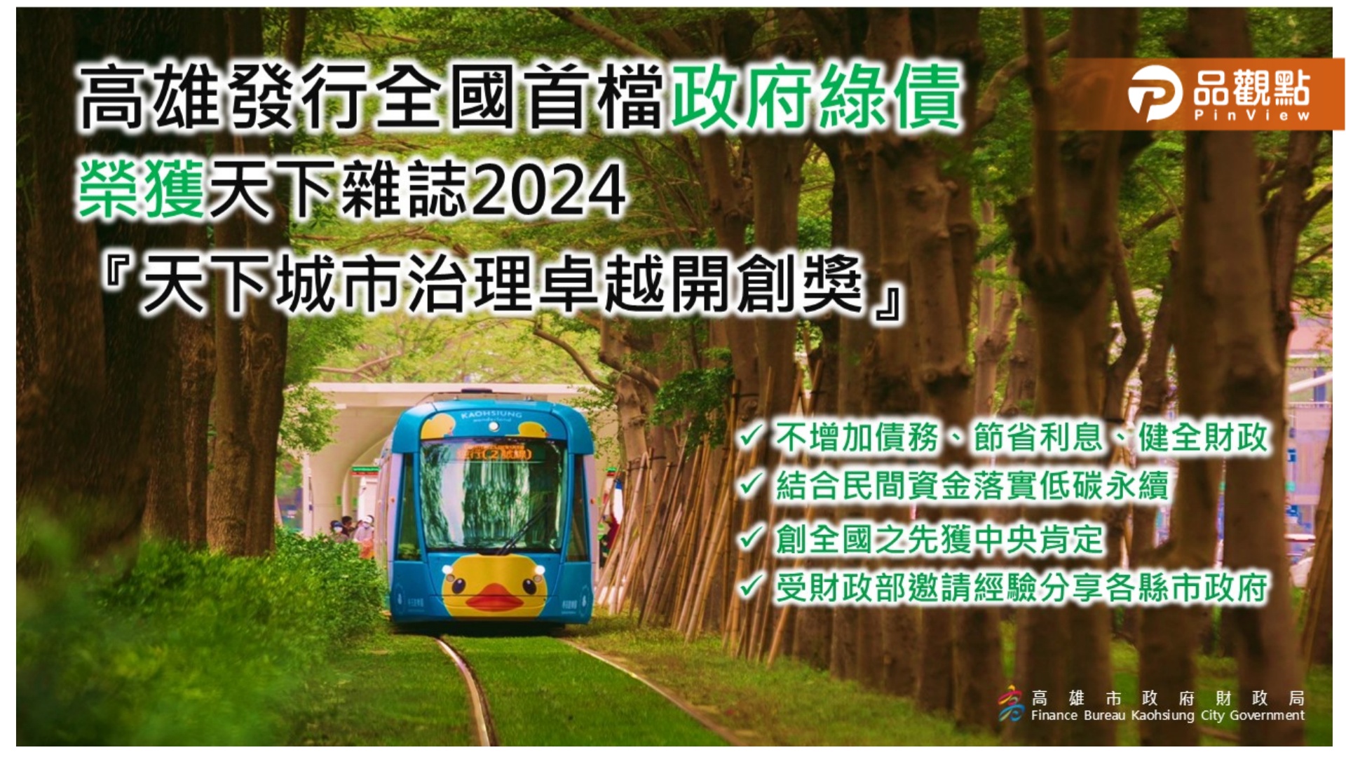 創全國政府單位發行綠債首例 高市財政局獲「2024天下城市治理卓越開創獎」