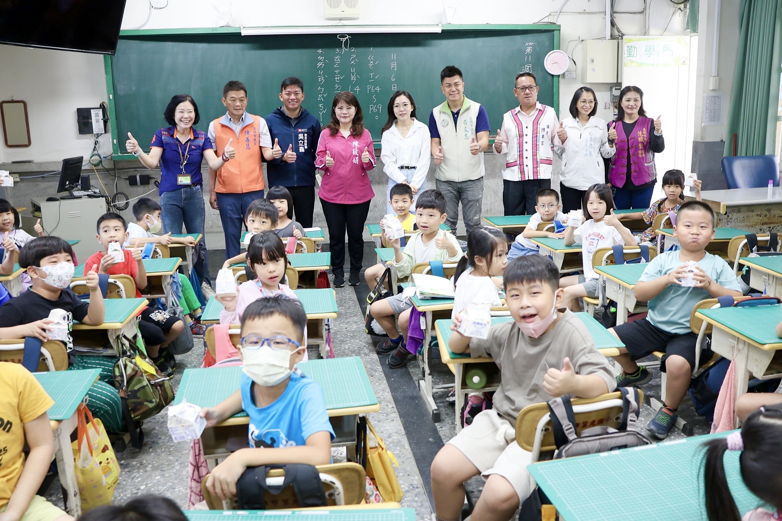 高雄市議會關心校園推動學童飲用乳品現況,6日高雄市議員由教育局長吳立森陪同到楠梓區莒光國小視察「學校採用國產可溯源乳品專案實施計畫」執行情形,並向學校教職員、志工團隊致謝,表達對推動此計畫的支持與肯定。