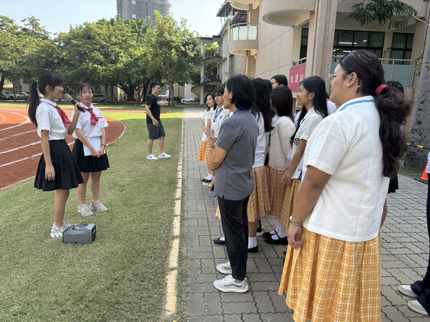 學校安排各班接待學生帶領菲律賓學生進入班級,共同體驗道地的台灣高中生活,並與班上同學交流互動,建立良好情誼,並享用台灣傳統美食當午餐,兩校師生均期待10天教育交流,能創造出更多美好互動回憶。