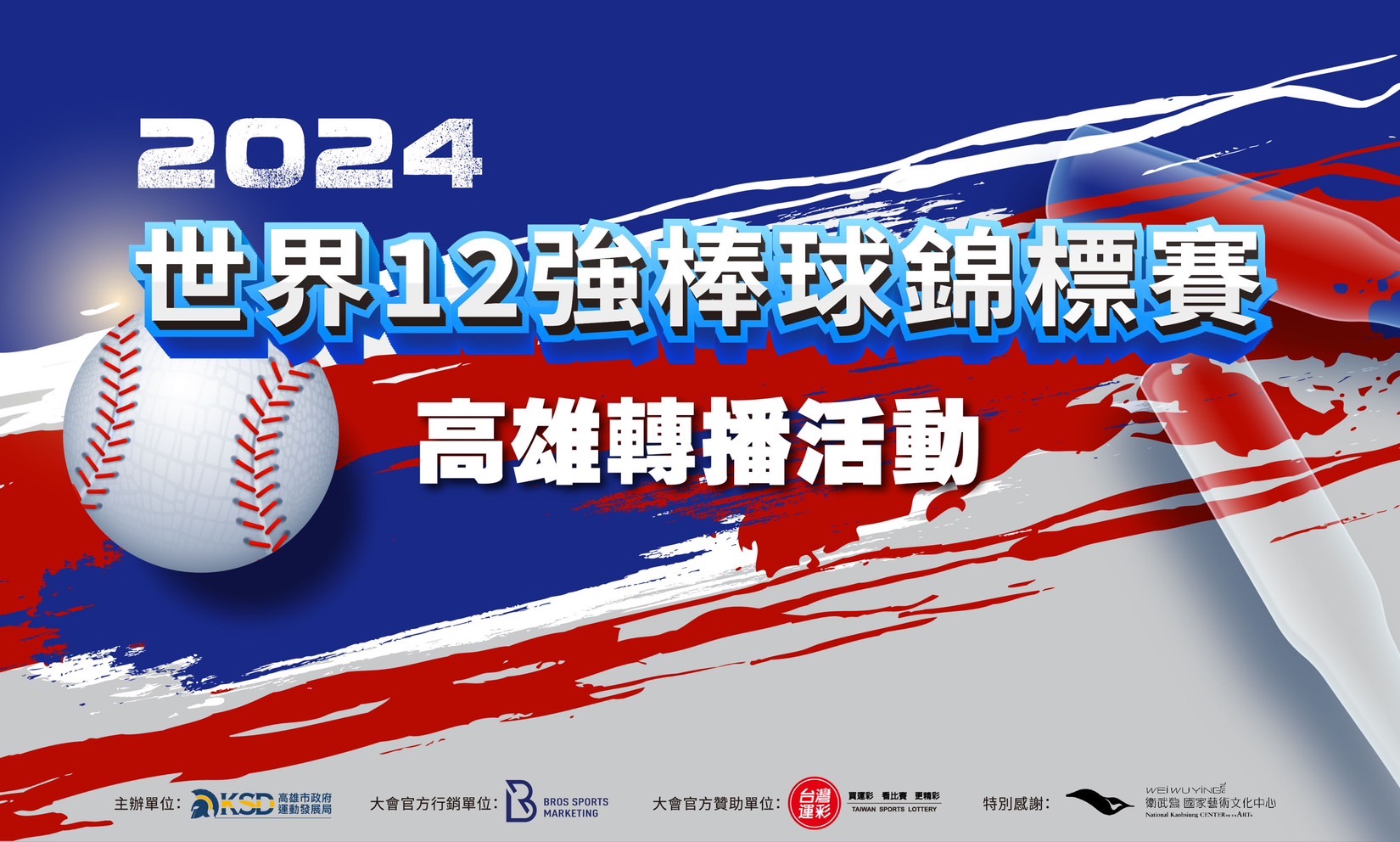 2024年世界12強棒球賽B組將於11月13日至11月18日進行B組預賽,高雄市政府運動發展局在預賽期間,於衛武營國家藝術文化中心榕樹廣場舉辦台灣隊比賽的轉播活動。活動自11月13日起,配合台灣隊的賽程,安排5場轉播活動,現場設有400吋超大螢幕,讓球迷可共聚一堂觀賞比賽,並邀請街頭藝人帶來精彩表演,現場還有互動遊戲與應援主持人帶動氣氛,讓觀眾享受熱鬧的應援氛圍。
