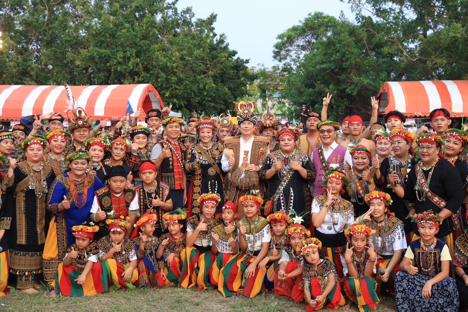 圖說:陳其邁出席換上傳統族服出席「TAKAO豐潮」原住民聯合豐年節。(圖片來源:高雄市政府提供)