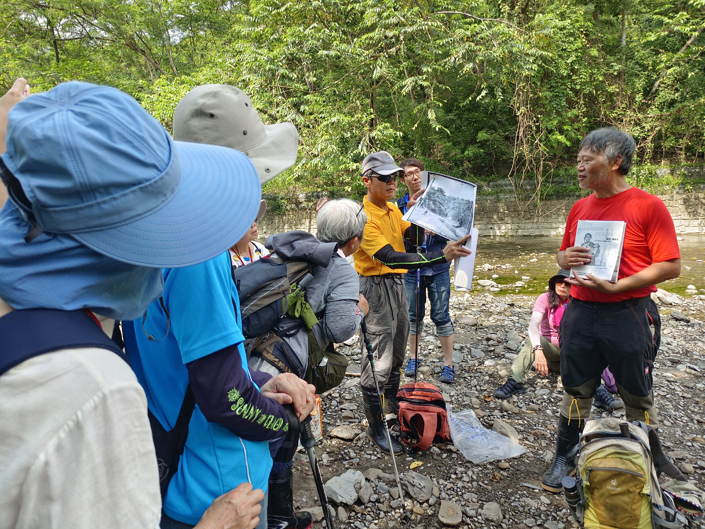 ↑圖說:導覽老師拿出約翰˙湯姆生拍攝的照片與現況做比對(圖片來源:高雄市客委會提供)