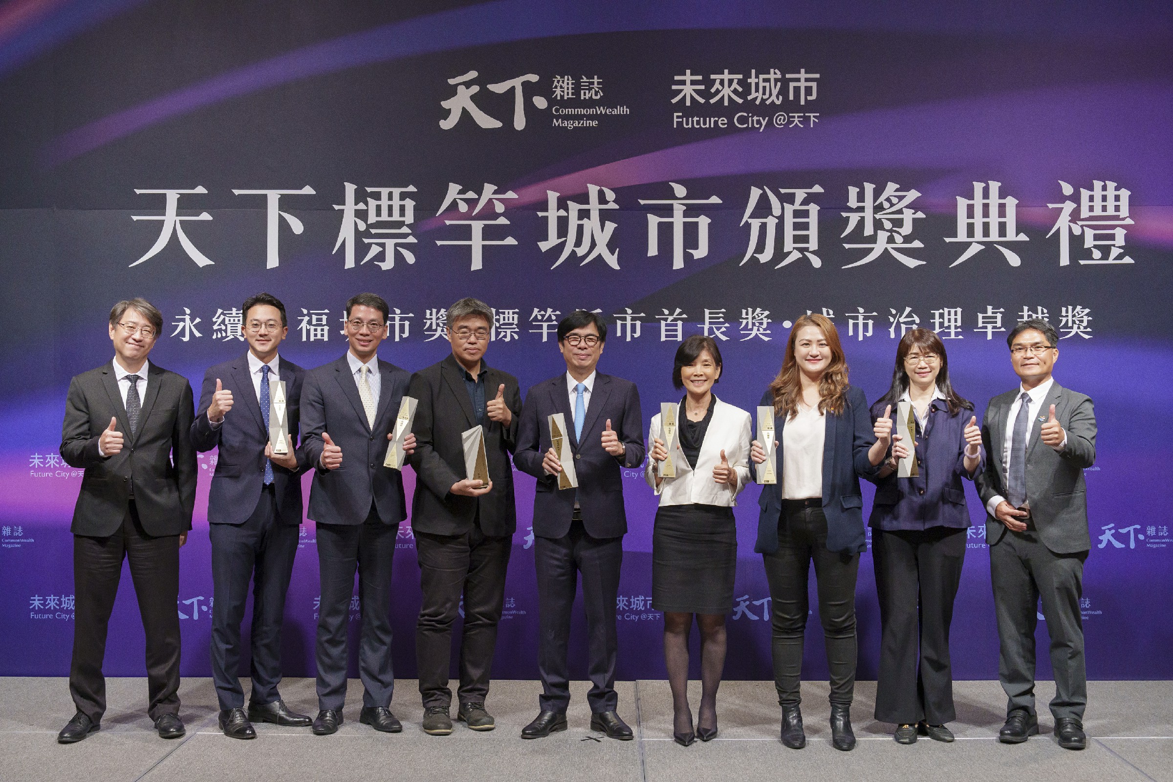 ↑圖說:高雄城市治理再獲肯定!勇奪「天下永續幸福城市獎」、「年度卓越城市獎」首獎,陳其邁市長率領相關局處首長北上領獎。(圖片來源:高雄市政府提供)