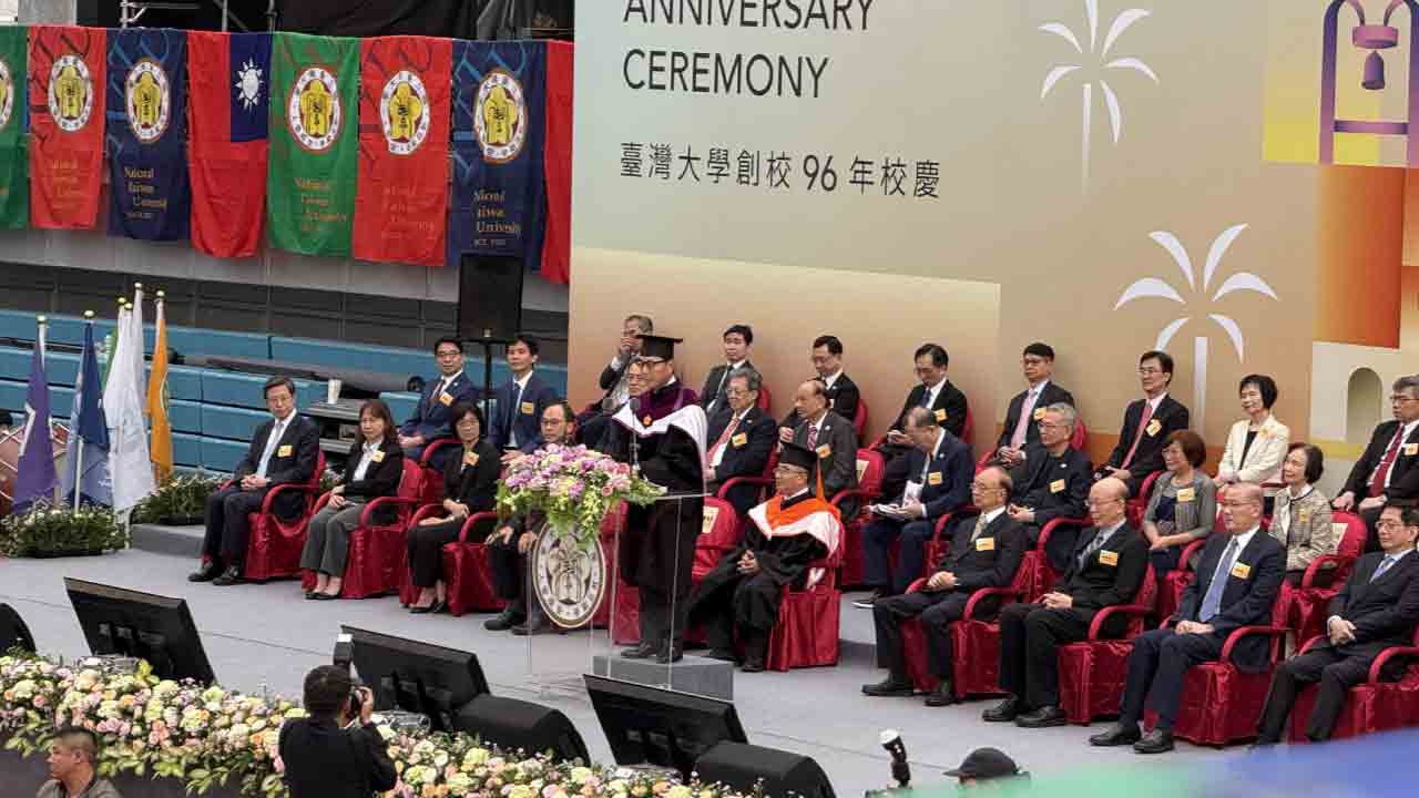 蔡明忠致詞時表示(如下圖,記者李錦奇攝影),能獲母校名譽博士學位是至高無上的榮耀,感謝母校的厚愛。他也體認這份榮耀與肯定,是代表自己須承擔更大的責任,為社會共好及永續而努力。