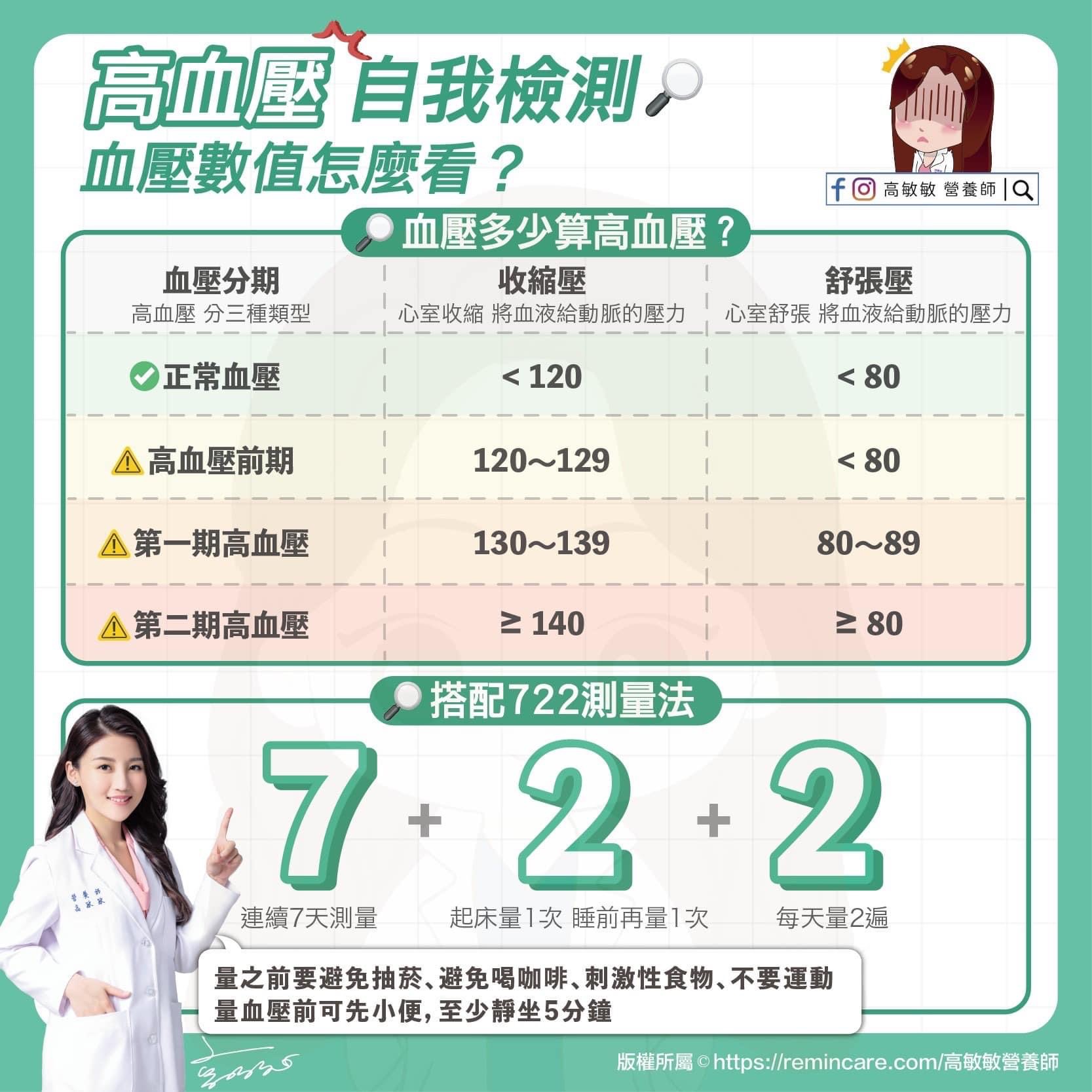 高血壓前期 收縮壓<120~129mmHg 舒張壓<80mmHg