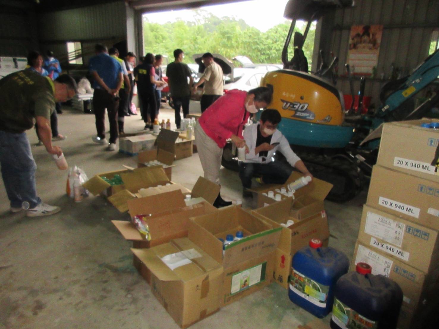 ↑圖說: 工務局、環保局及農業局查獲農藥一批。(圖片來源:高雄市工務局提供)