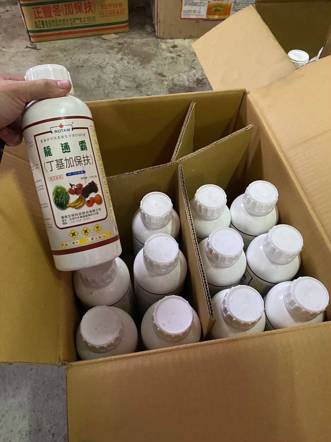 ↑圖說:查獲農藥陶斯松(俗稱毒斯扛)、嘸菌擾(亞拖敏)、龍通靈(丁基加保扶)(圖片來源:高雄市工務局提供)