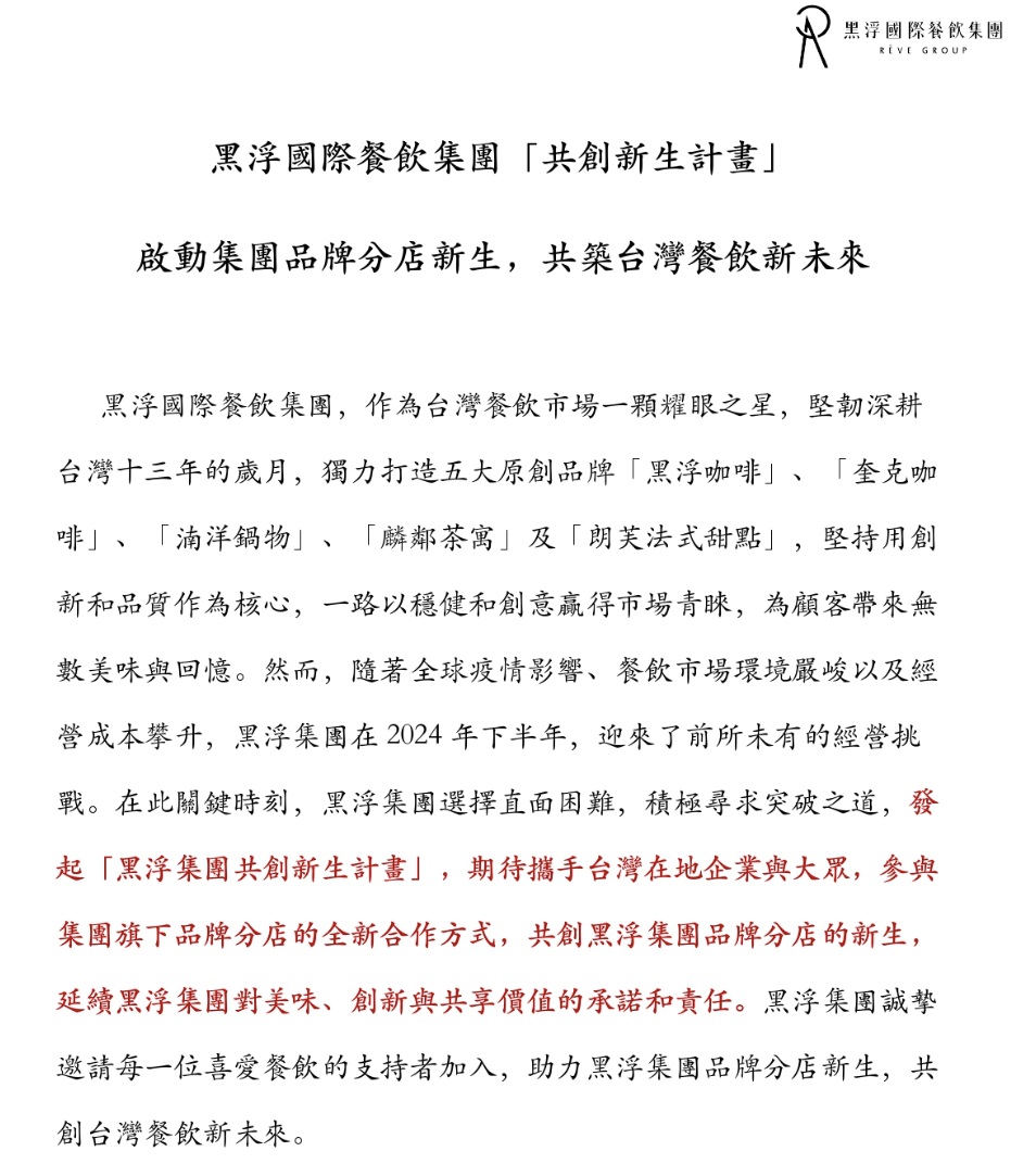 根據王浩宇16日在臉書的貼文表示,某家從南部起家的中型知名咖啡集團,除了咖啡外,近年來也轉投資多種餐飲,包含咖啡品牌和火鍋店,曾在全國擁有十幾間分店。然而,自從年中以來,該集團因為擴張太快,導致面臨財務危機,員工薪水發放延遲,人力也出現不足的問題。