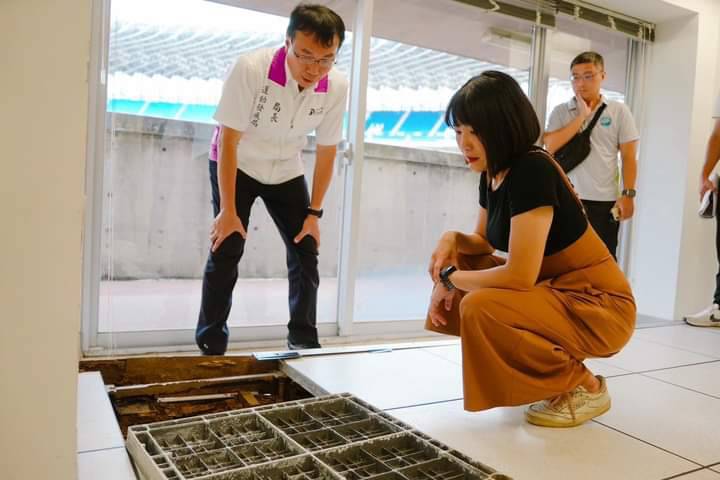 圖說:鄭孟洳(右)現場勘查運動場地缺失。(圖片來源:鄭孟洳臉書)