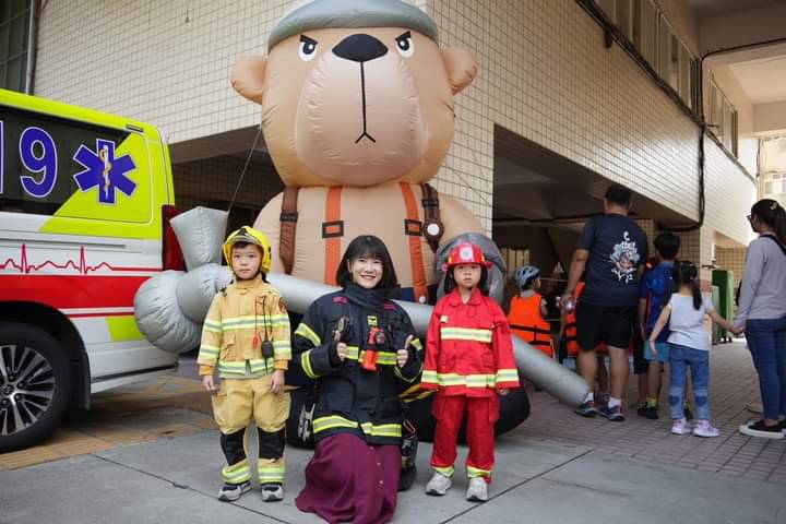 圖說:鄭孟洳(左二)受到小朋友歡迎。(圖片來源:鄭孟洳臉書)